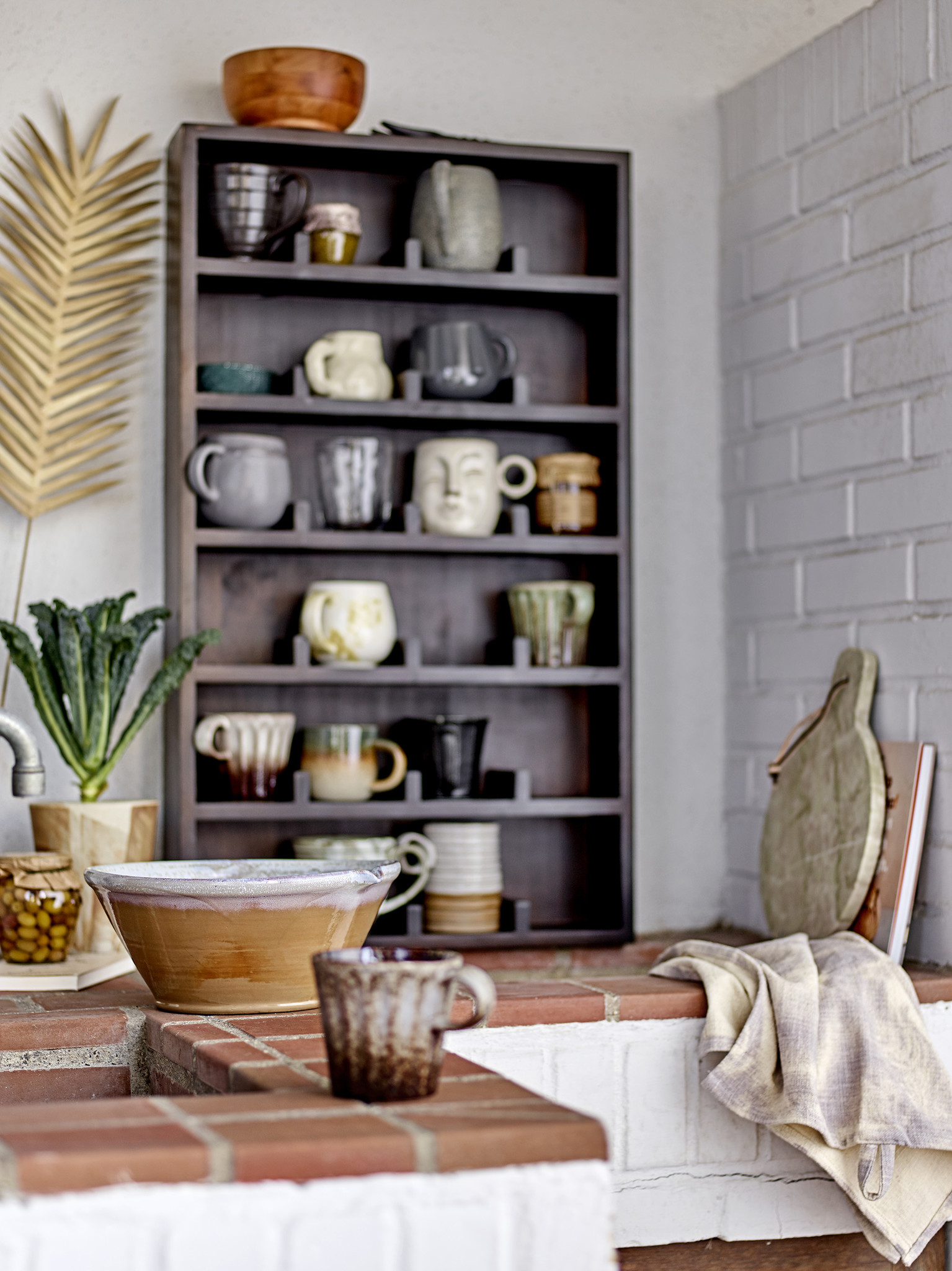 The Thessa Shelf by Bloomingville is made of pinewood, stained in a beautiful dark nature color. Perfect for your collection of unique mugs or small deco items for a personal styling in a nordic setting. Material: Mango wood, Care instructions: Wipe clean with a moist cloth.