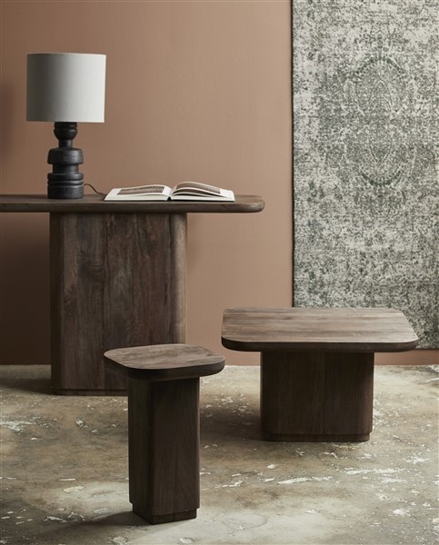 TOKE side table is made of mango wood and has a stained dark brown surface. TOKE is a part of a serie of tables and side tables in same material. Material:Mango wood
