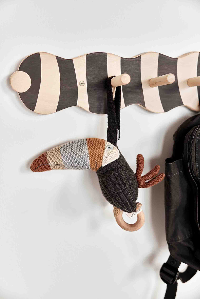 Let your child relax with our adorable Toucan Music Mobile. The music is soft and soothing and will definitely help put the child to sleep. The music starts when the small wooden ring is pulled down. The music mobile is an image of our toucan and is sure to bring smiles and joy._x000D_