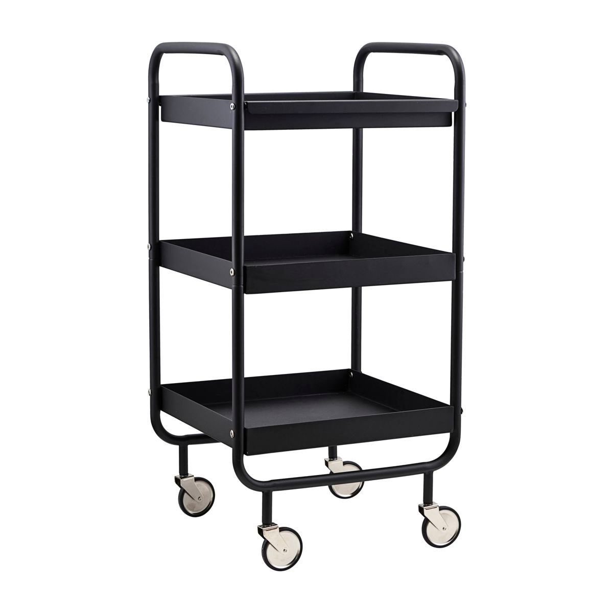 A trolley table is a multifunctional piece of furniture with many practical ways of using it and this trolley from House Doctor is no exception. The stunning trolley is called Roll. It is made of steel with a layer of matte black lacquer, which gives it a stylish appeal. Roll measures 42 cm in length, 38 cm in width and 85 cm in height. With its detachable tray piece, it is the perfect piece of furniture for your kitchen. You can place your morning coffee on the tray and drink it in bed. Roll stands on four wheels, which makes it easy to move around in your home if you ever need to. Material: Steel Care instructions: Clean with a moist cloth, Assembly required