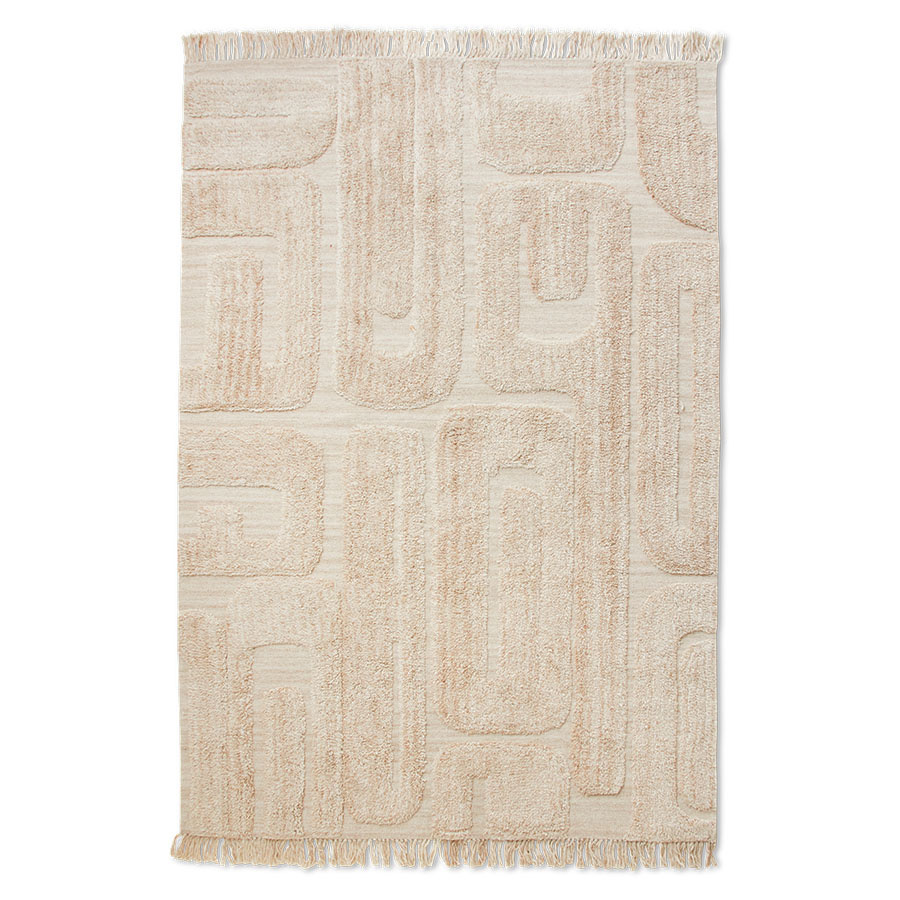 Inspired by the soft hues and delicate textures of limestone, this rug serves as a stunning natural foundation for your coffee table, dining area, or bedroom. The tufted design combines high pile and short fibers to create a playful pattern that adds a touch of elegance and breaks up the simplicity of your space.Material:Wool, polyester, cotton. Characteristic: Due to handmade yarn each yarn is unique