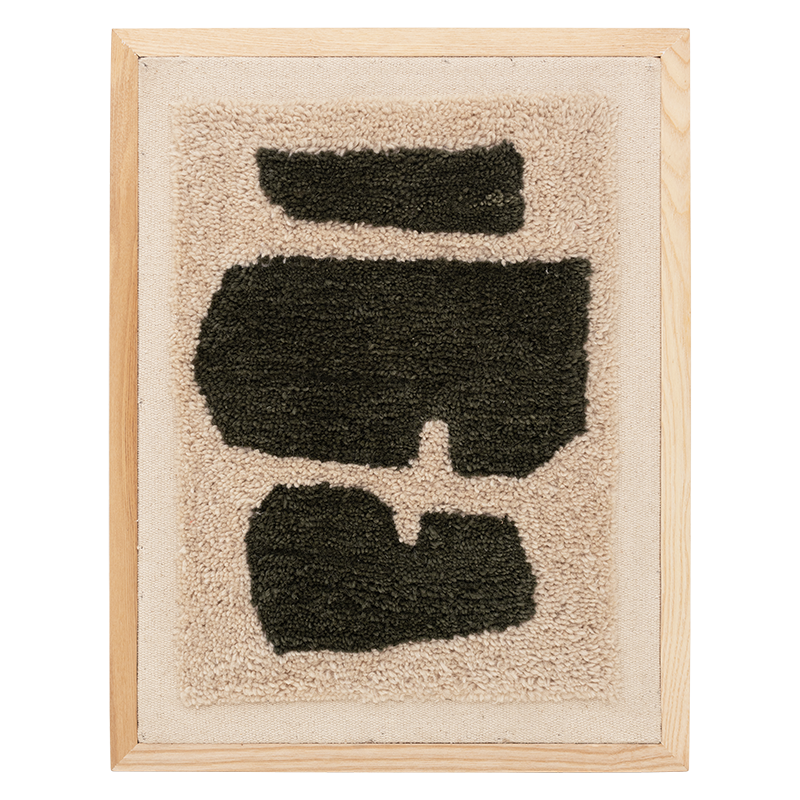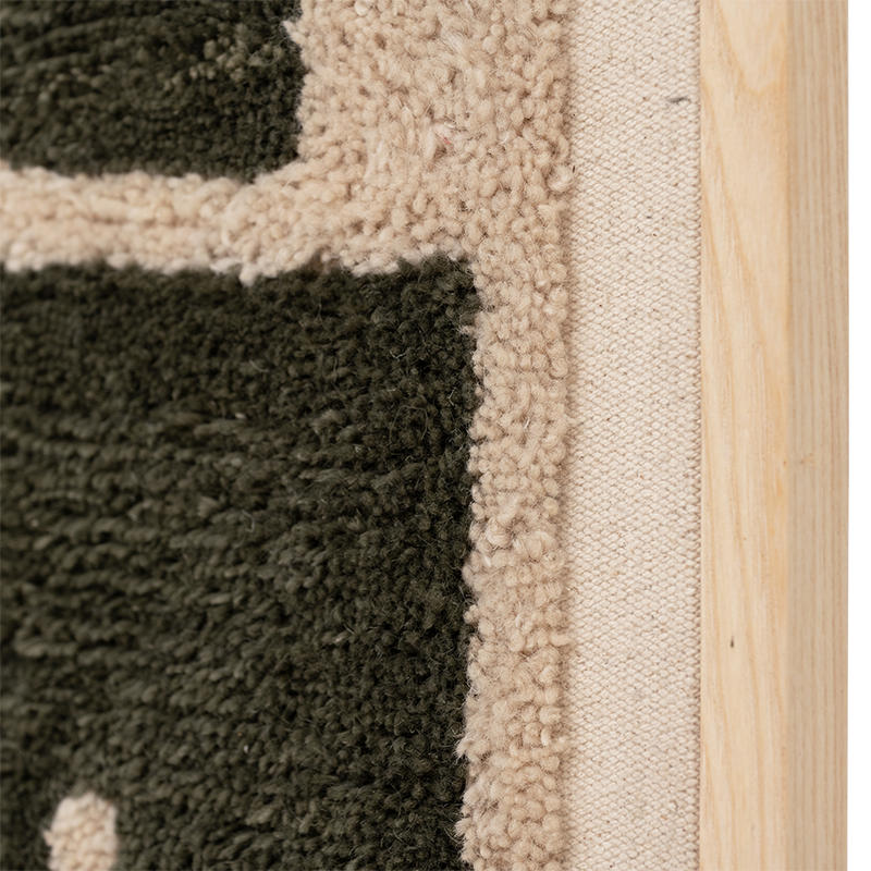 “The world of reality has its limits; the world of imagination is boundless.” Jean-Jacques Rousseau | Urban Nature Culture’s wall deco Macio puts your mind to work – it’s up to your imagination to decide what’s the thought behind the abstract, tufted artwork. Macio comes in two different designs, both with contrasting beige and green shades. Handmade from wool and framed in natural oak, it adds softness and an arty touch to every urban home." Material: Wool 100% Characteristics of the product: