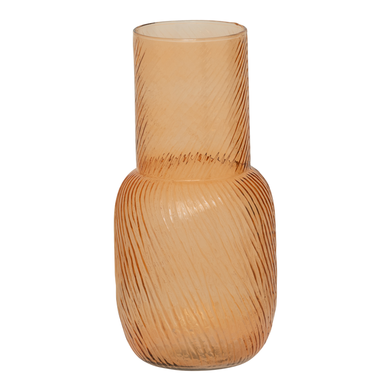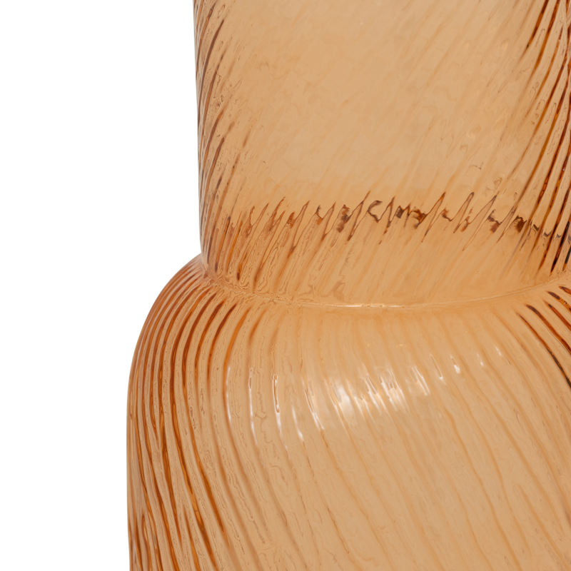 Made from recycled glass, Ara is a prime example of the circular economy – giving new life to glass waste. In its details, is where you’ll find the magic. This beauty, available in papaya, is made by hand and given slanted embossed, irregular lines – adding depth and character to the coloured glass. A true embodiment of sustainability, it makes a great centrepiece in any living room, hallway, bedroom or dining area.