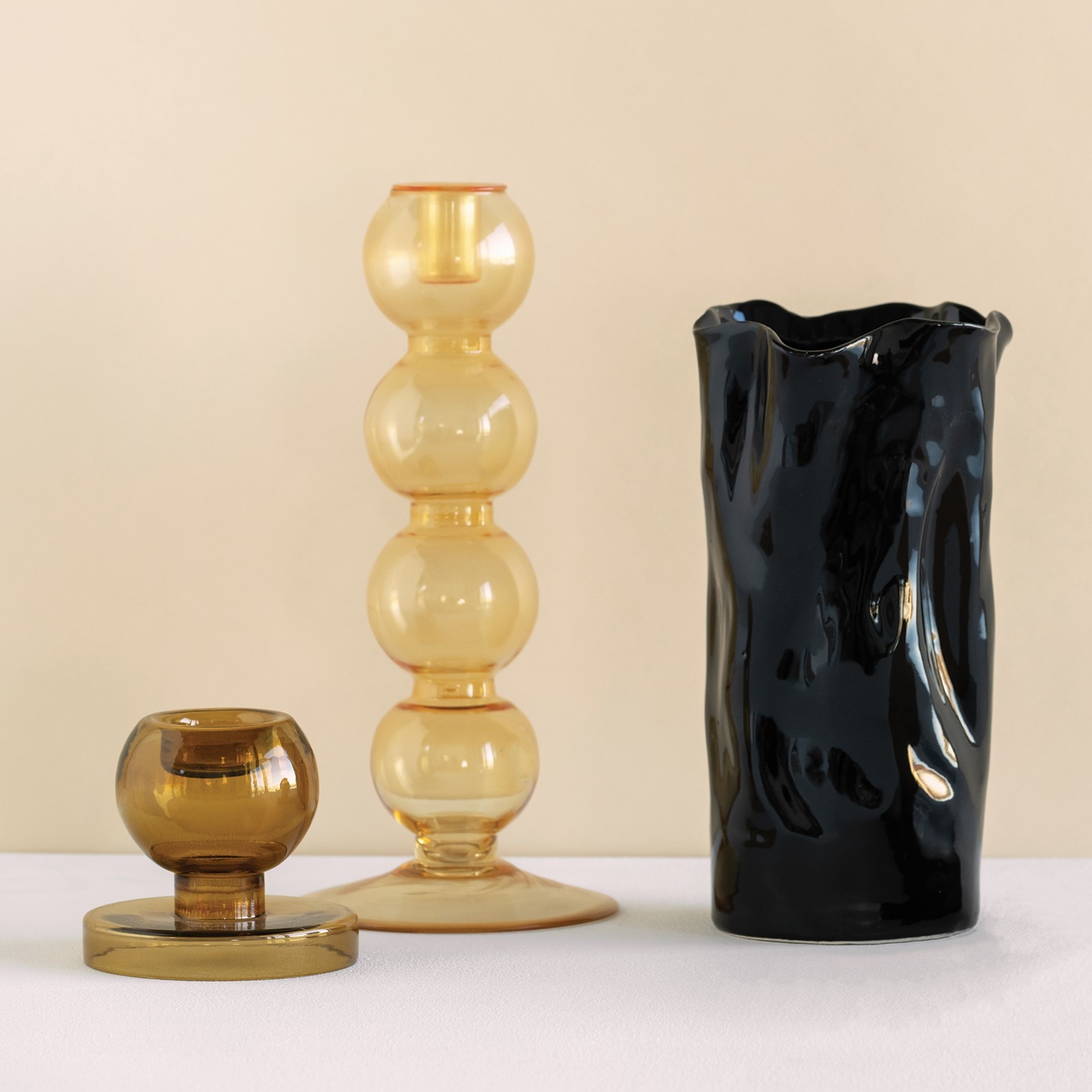 It takes more than one look to discover the many faces of the Enza vase. This pleated, high gloss ceramic vase breathes handmade and organic – a refined, natural beauty, given a shiny black finish. It provides a great contrast to the colourful flowers you’ll let it hug, and perfectly blends in with any urban interior.