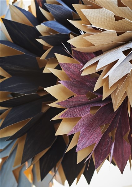 Madam Stoltz Veneer paper star w/ lights 15 pcs LED lights. 2x CR2032 batteries included