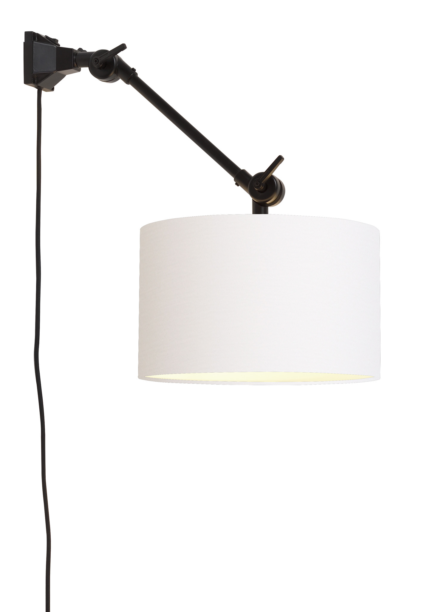 Wall lamp iron/textile Amsterdam h.30cm/shade 32x20cm white, S. Material: Iron/cotton - Fitting: E27 - Watt: 40 - Min. / max. height: 30cm - Max. width 65cm - Size base 7,5cm x 7,5cm - Material/colour electr. Cord: Textile/Black - Length electr. cord: 200 cm