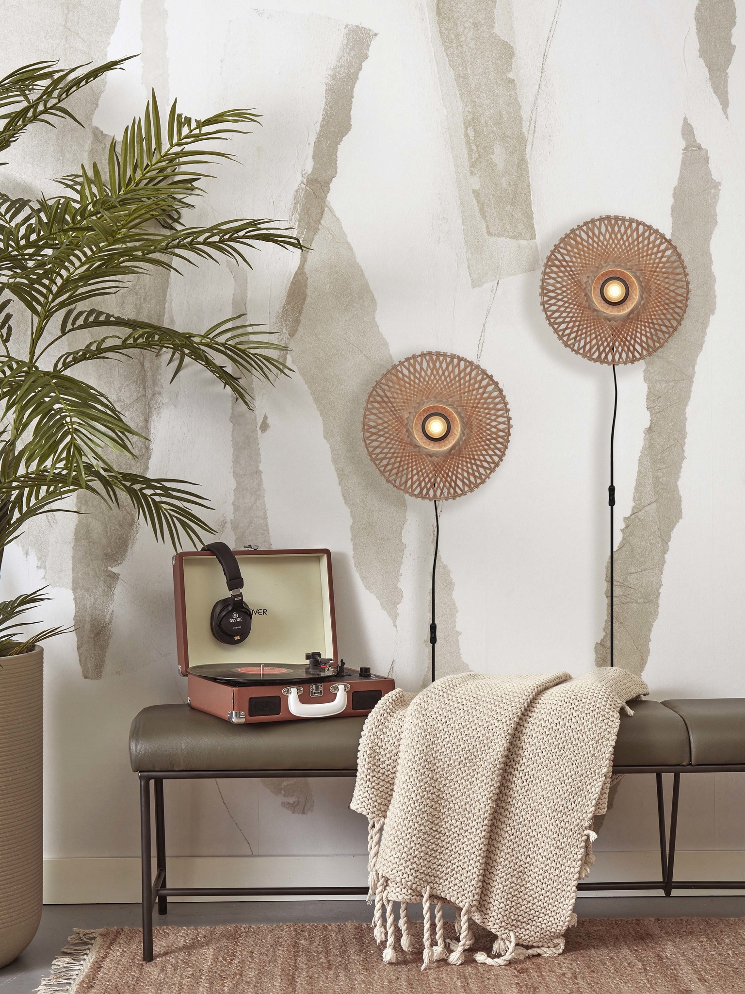 - Material: Bamboo, iron