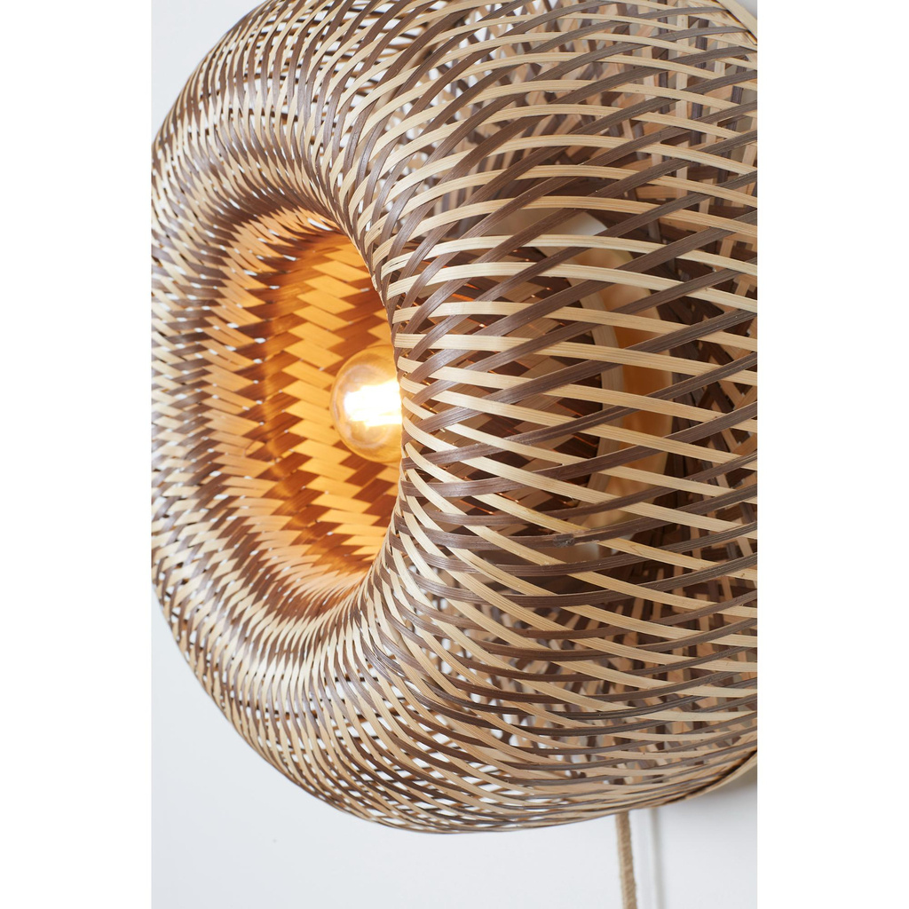Wandlamp Barbados naturel brengt de rust en charme van het eiland Barbados naar jouw interieur. Met haar unieke donutvorm en met de hand gevlochten bamboestroken is deze lamp een echt kunstwerk van vakmanschap. Het bijzondere vlechtwerk creëert een prachtig spel van licht en schaduw, waardoor een warme, tropische sfeer ontstaat. Of je hem nu in de woonkamer of slaapkamer plaatst, deze muurlamp voegt direct karakter toe aan elke kamer. De lamp is eenvoudig te bevestigen met het meegeleverde wandsysteem. Deze muurlamp combineert functionaliteit met esthetiek en is gemaakt van duurzame materialen. Zo haal je niet alleen een vleugje exotische elegantie in huis, maar kies je ook voor een bewuster en milieuvriendelijk interieur. Perfect voor wie houdt van natuurlijke en stijlvolle verlichting!