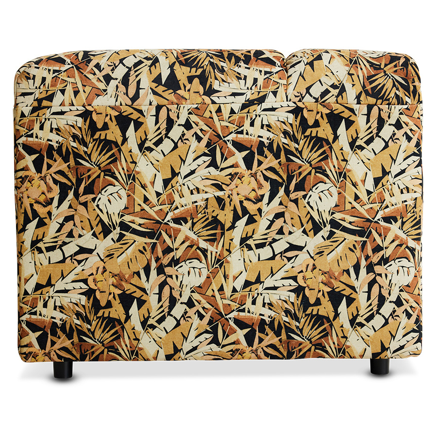 Inspired by the desire to lounge around from time to time, we have created a couch that is both multi-functional and contemporary. You're in charge and you can create the couch you want with our nine Wave couch elements. It has a slightly more active seat and can be combined with an inviting divan element. The overall shape of the couch can be traced back to Hollywood in the early 1970s and, thanks to its round curves, it will turn your living room into an inviting place to gather and relax. Get ready, because the couch comes upholstered in a special fabric that has only been designed for the Wave couch. The jungle print is for those who have a craving for richness and extravagance in their lives. Seating height (cm): 41 Seating depth (cm): 61 Seating width (cm): 61 Height armrests (cm): 80 Backrest height (cm): 80 Care instructions: Remove non-greasy stains by carefully dabbing with a lint-free cloth or sponge wrung out in clean warm water. If necessary, clean by dabbing with soapy water with a little dish soap. Finally, dab the surface with clean water. Material: 100% Polyester