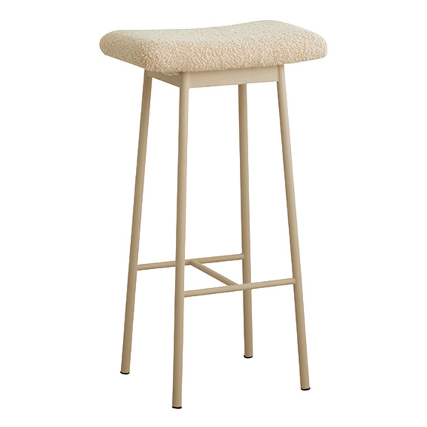 ZALA stool has a iron leg part with a polsteret bar seat. The polster is made of a teddy fabric that has a nice fluffy look. The bar stool has iron bars for feet resting. Material: Iron, polyester