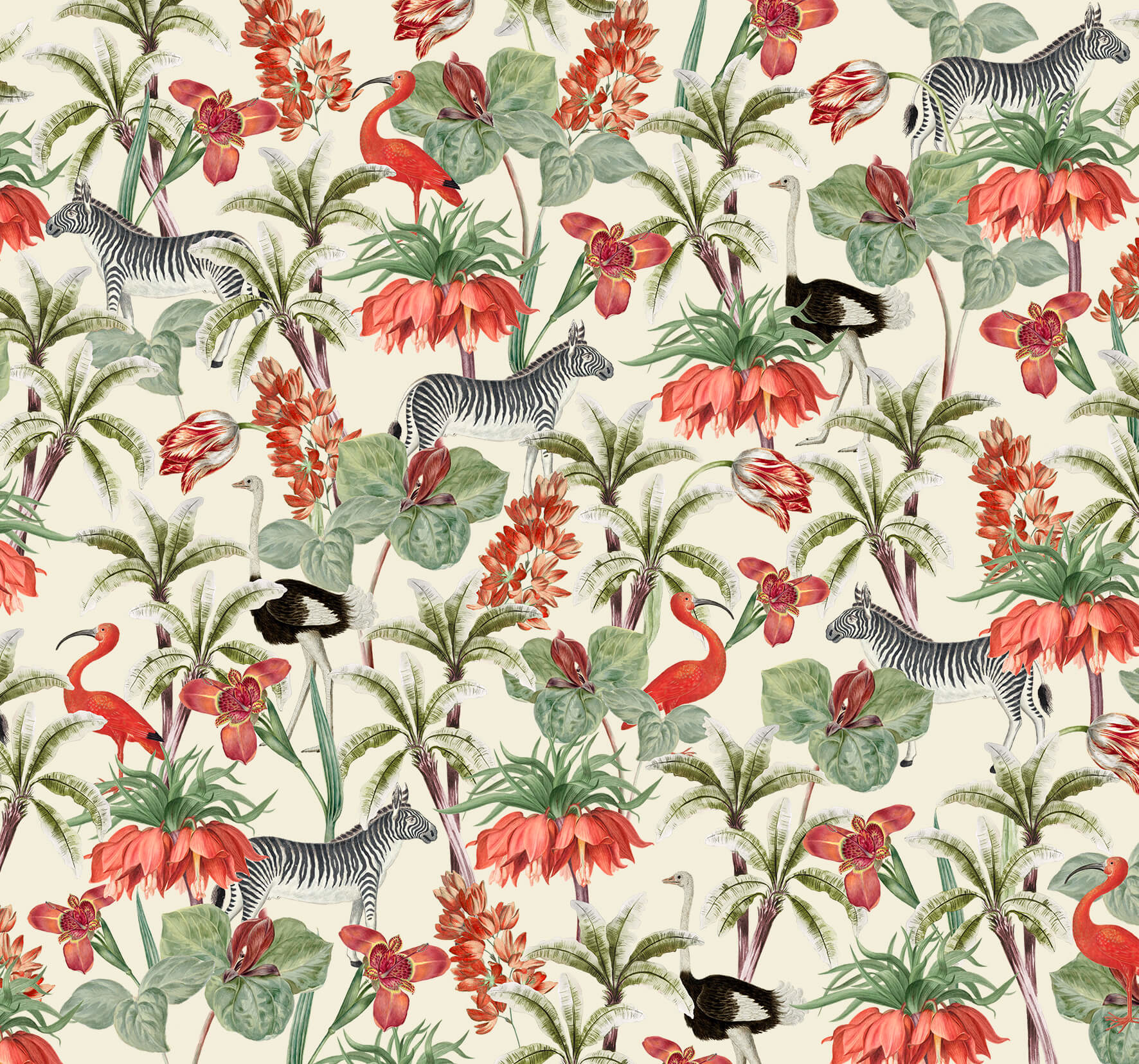 Fijngetekende bloem- en dierfiguren uit de Rijksmuseum collectie in deze behangcirkel, afkomstig uit tekeningen en schilderijen van Dorothea Maria Gsell geboren in de 17de eeuw, Jean Bernard uit de 19de eeuw en Robert Jacob Gordon uit de 18de eeuw, komen samen in dit bijzondere design. Ieder met een fascinatie voor flora en fauna die ze op hun eigen manier hebben vastgelegd in tekeningen en schilderijen.