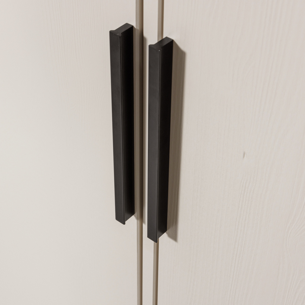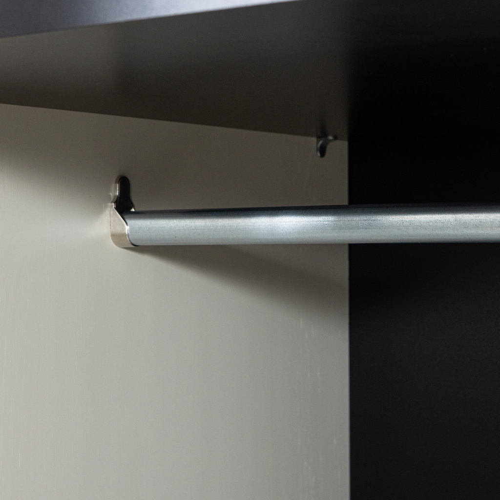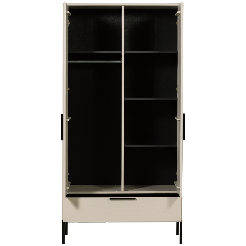 De tweedeurs kast Adam is een Nederlands fabricaat uit de collectie van WOOOD. De kast is gemaakt van massief geschuurd grenenhout wat een robuuste look geeft. Het interieur van de kast is in dezelfde kleur als de kast gespoten en bestaat uit links: een hanggedeelte met een roede en een legplank, en rechts: 3 legplanken. De legplanken zijn gemaakt van spaanplaat. Onder deze deuren zit een brede treklade. Zowel de handvaten van de deuren en de lade evenals de poten zijn stijlvol afgewerkt met een mat zwarte poedercoating. Maak de slaap- of kinderkamer compleet met het ladekastje Adam!