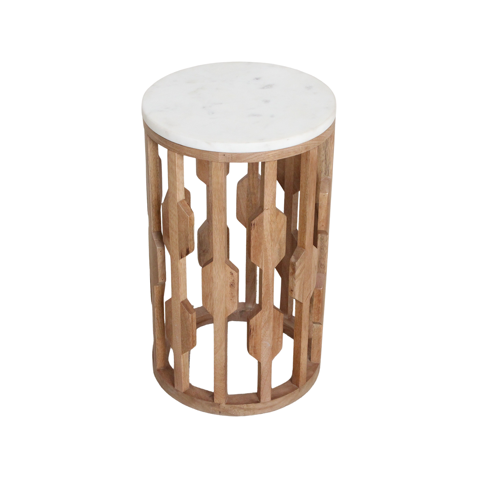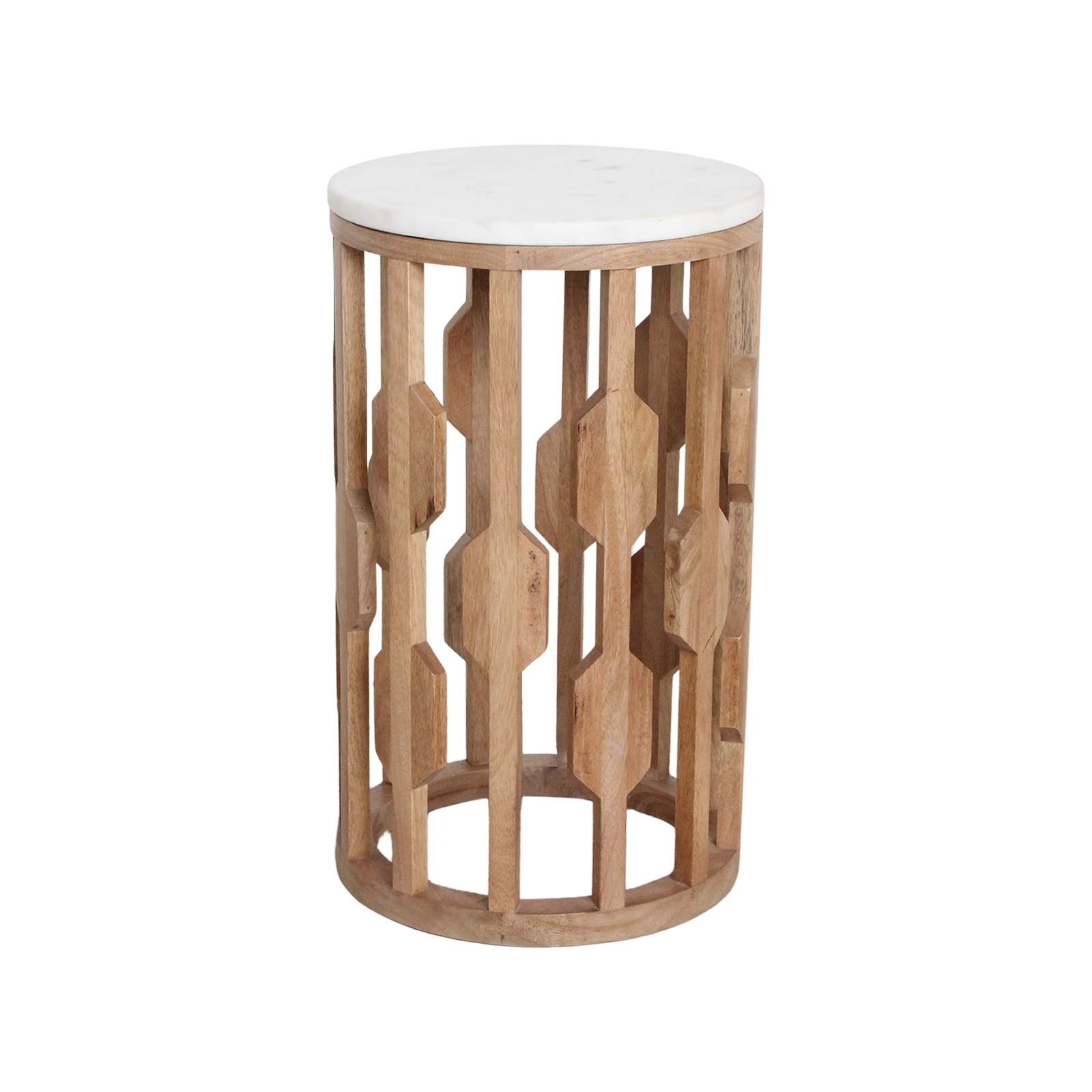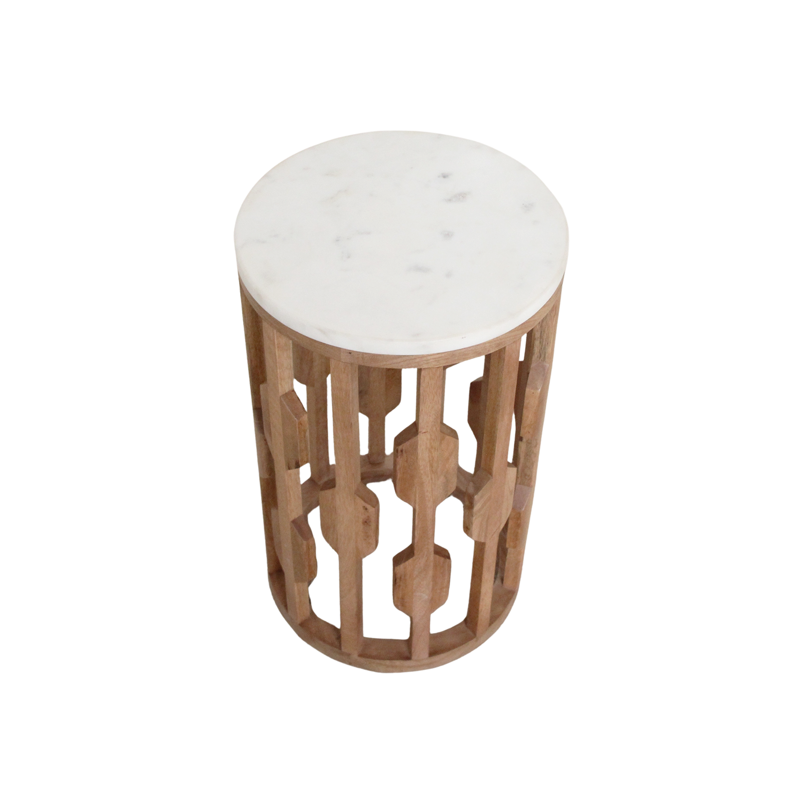 Atjeh bijzettafel – ronde marmeren bijzettafel met mangohouten onderstel