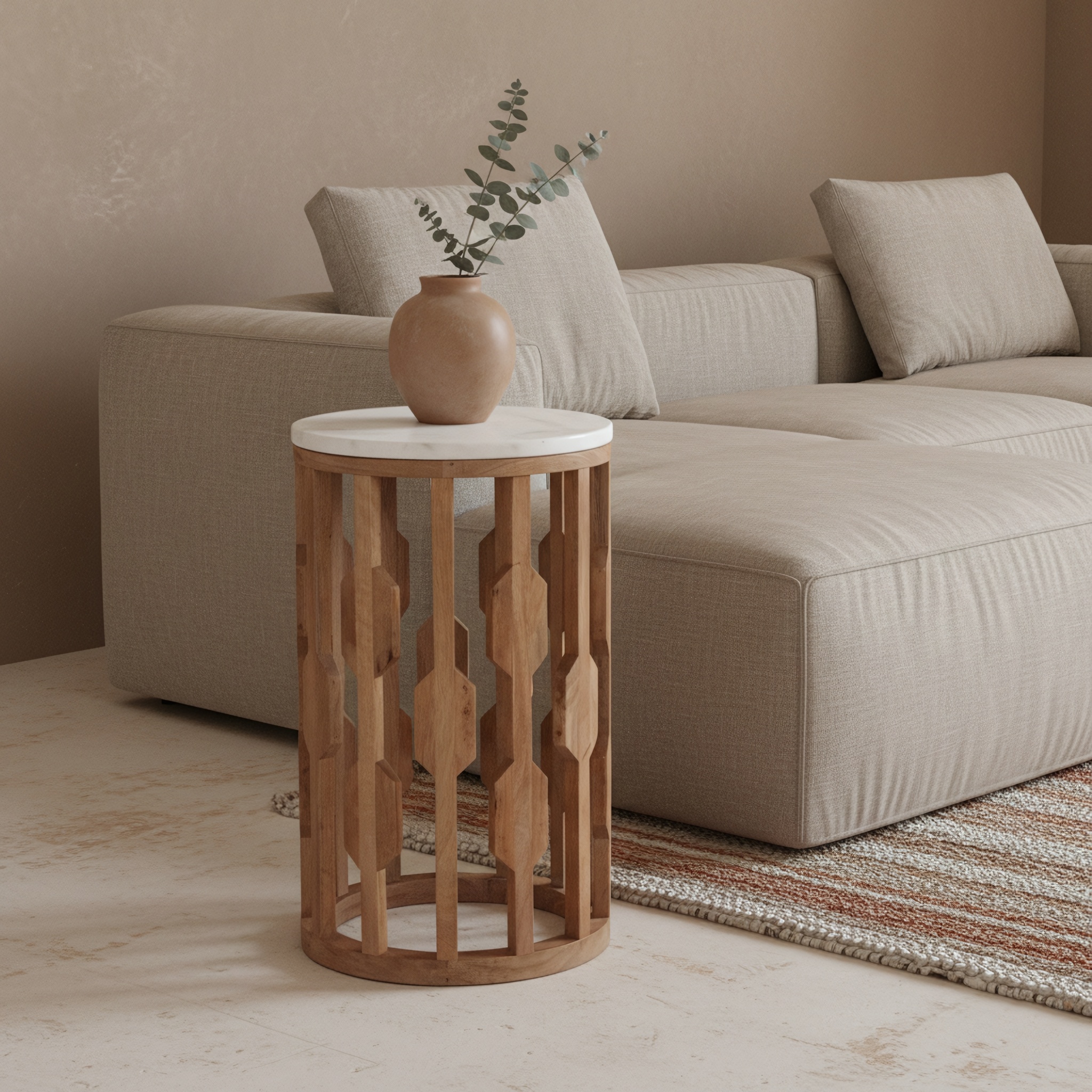De Atjeh bijzettafel van marmer is een stijlvolle en tijdloze toevoeging aan je interieur – een marmeren tafel waar je jarenlang plezier van hebt.