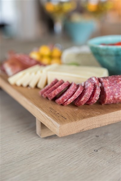 De AUTHENTIC snijplank groot is een prachtig voorbeeld van minimalistisch design in warm eikenhout. De subtiele pootjes tillen de plank iets van het oppervlak, wat zorgt voor een luchtige en verfijnde uitstraling. Dankzij de food-safe olie komen de nerven en natuurlijke kleurvariaties in het hout mooi naar voren.