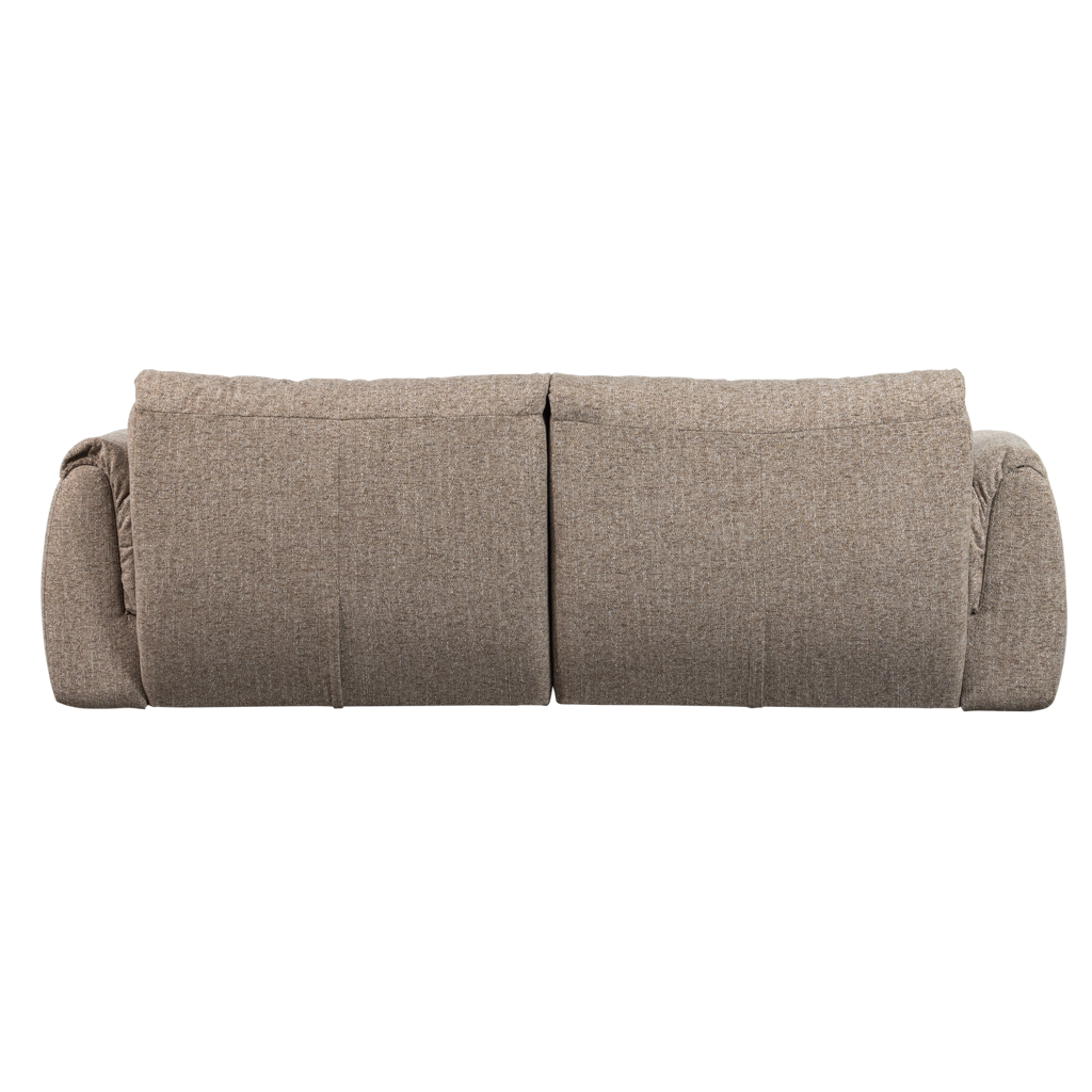 De bank is bekleed met de grof geweven stof Orari, een hoogwaardige stof met een zachte grip en een mooie bruin gemêleerde kleur. Dankzij de samenstelling van polyester en nylon is Orari stevig, kleurvast én geschikt voor zeer intensief gebruik. Bovendien is de stof behandeld met Teflon Fabric Protector, waardoor impregneren niet nodig is.