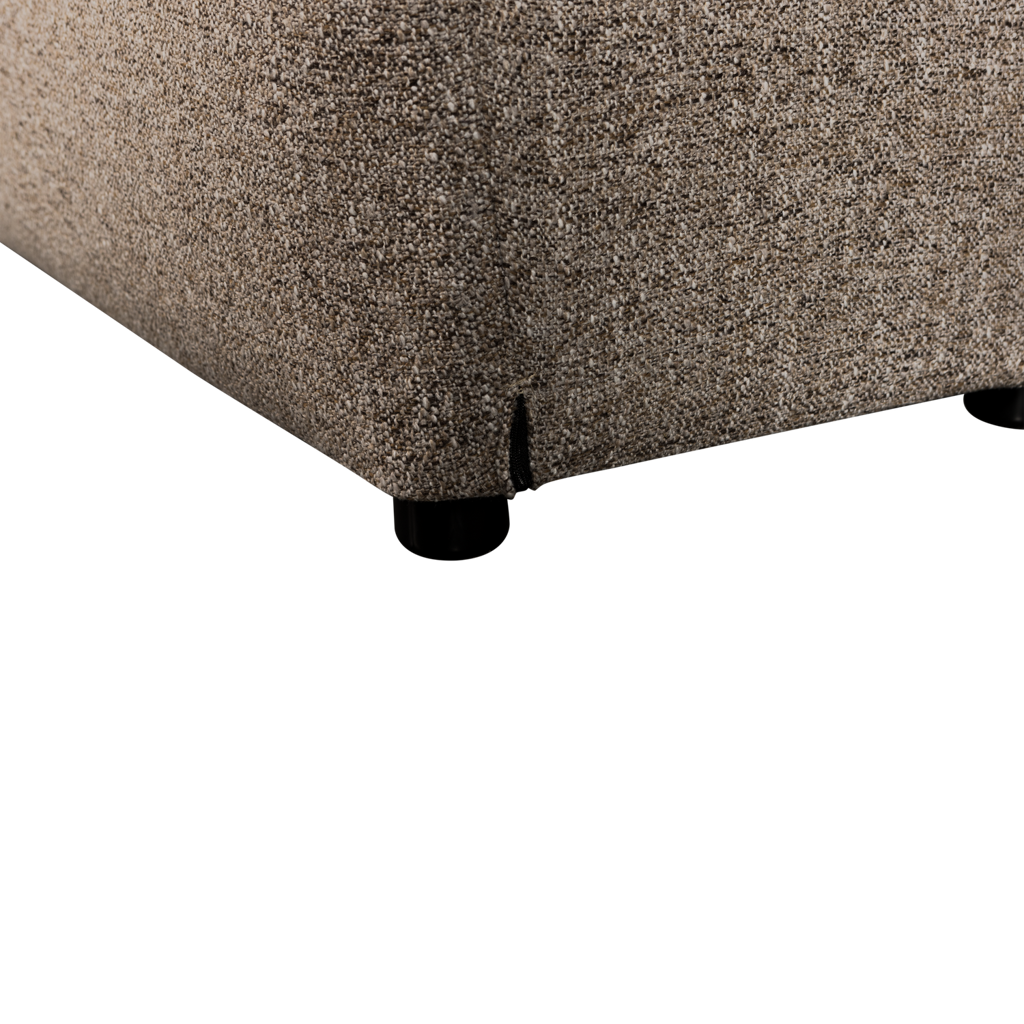 Bekleed met de robuuste en stijlvolle Orari-stof, straalt deze hocker een warme en natuurlijke sfeer uit. De warmgrijze gemêleerde kleur maakt hem tijdloos en makkelijk te combineren met andere tinten. Dankzij de Teflon Fabric Protector is de stof bovendien bestand tegen vocht, vuil en stof – ideaal voor dagelijks gebruik.