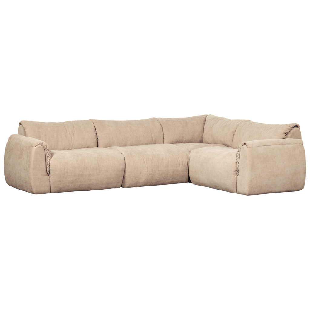Baggy Hoekbank Rechts – Rijke chenille in zand voor een warme, royale zithoek