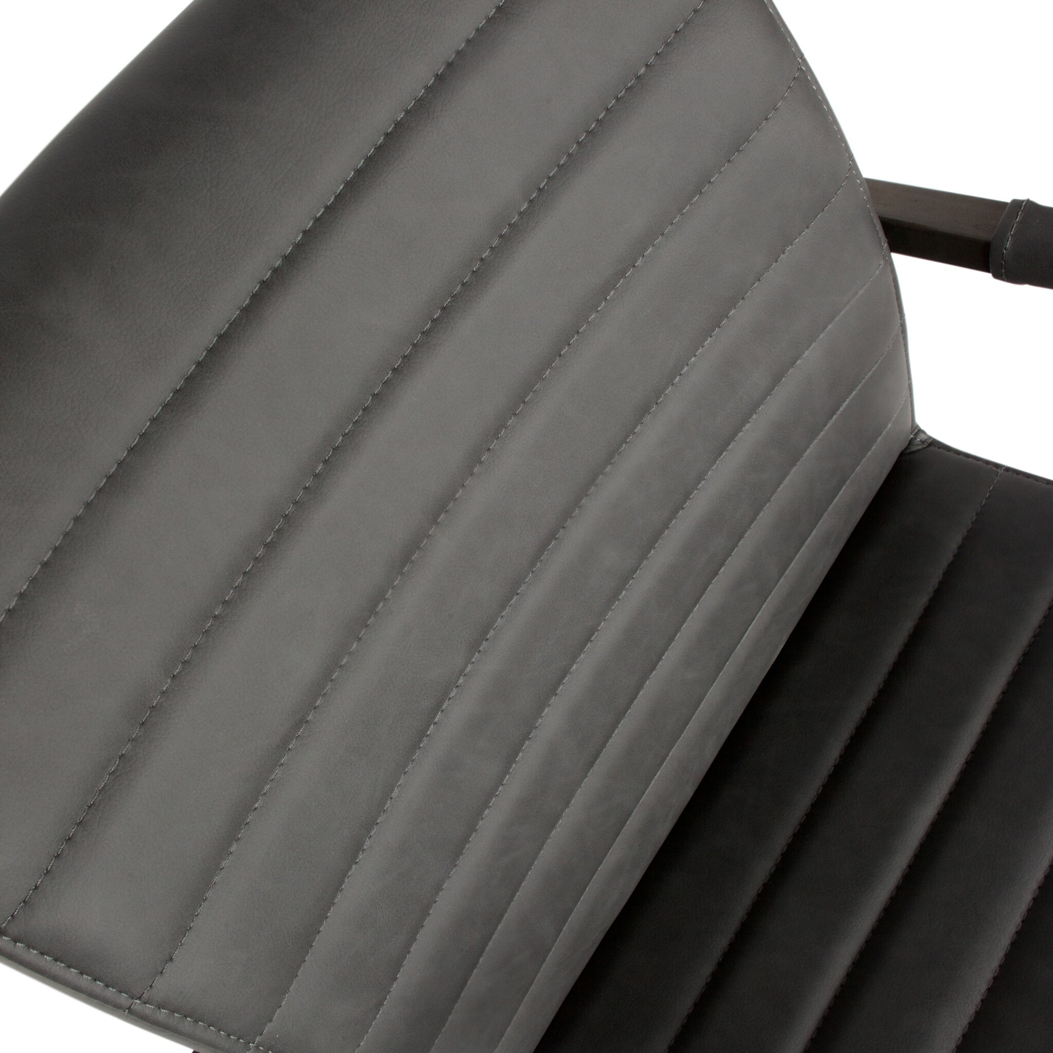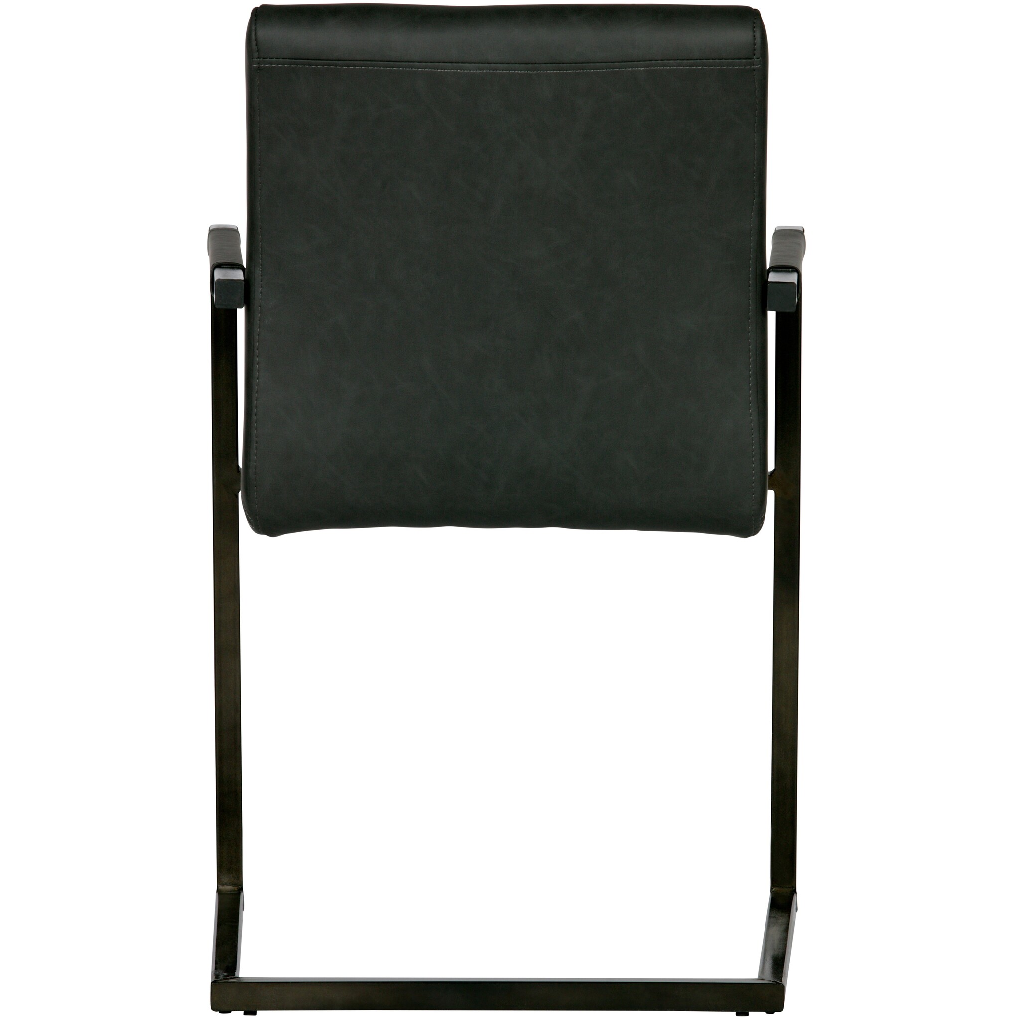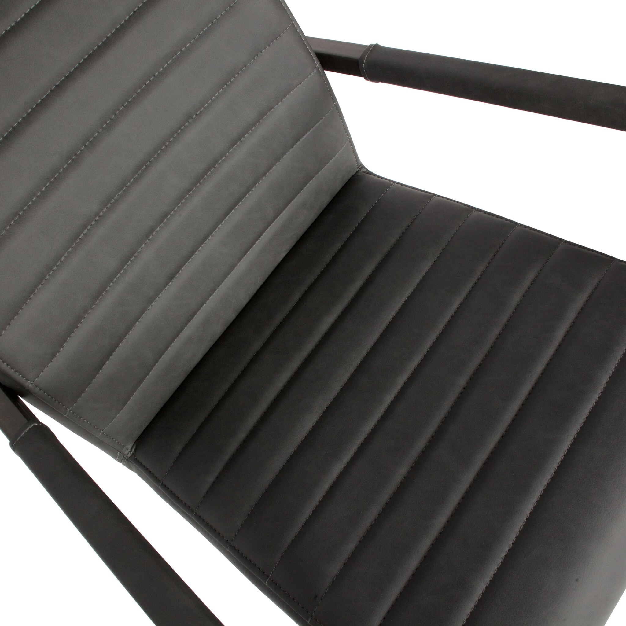Het frame van de stoel is van metaal en afgewerkt met een zwarte poedercoating. De foam in de zitting is Polyurethaan schuim (normaal schuim) met een dikte van 25 kg/m3. De rugleuning heeft een dikte van ditzelfde foam in 21 kg/m3. De zitting is bekleed met een PU leren stof met vintage look.