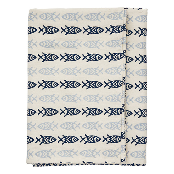 Madam Stoltz Bedrukt katoenen tafelkleed: gebroken wit donkerblauw lichtblauw