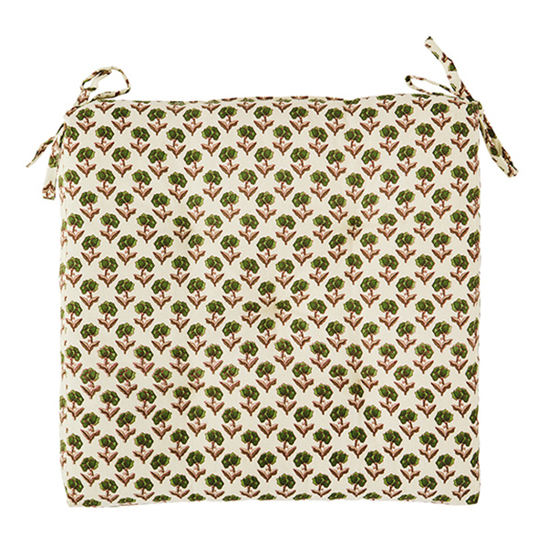 Bedrukte katoenen stoelkussen off white, groen, bordeaux