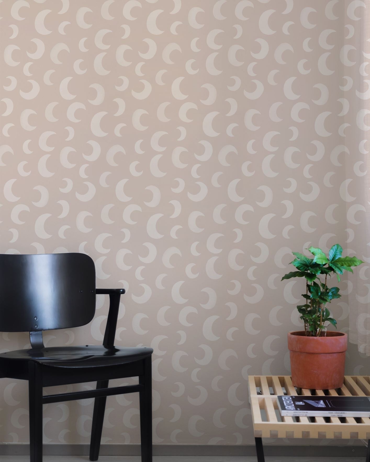 Voel het warme, zachte zand tussen je tenen en droom weg tussen de manen met het Moon Sand behang van Play at Slaep, ontworpen door designer Aniek Bartels. De subtiele zandkleurige achtergrond geeft een rustige, natuurlijke basis aan de kinderkamer, terwijl de speelse maanprint een vleugje fantasie toevoegt. Perfect voor wie een serene en toch bijzondere sfeer wil creëren.