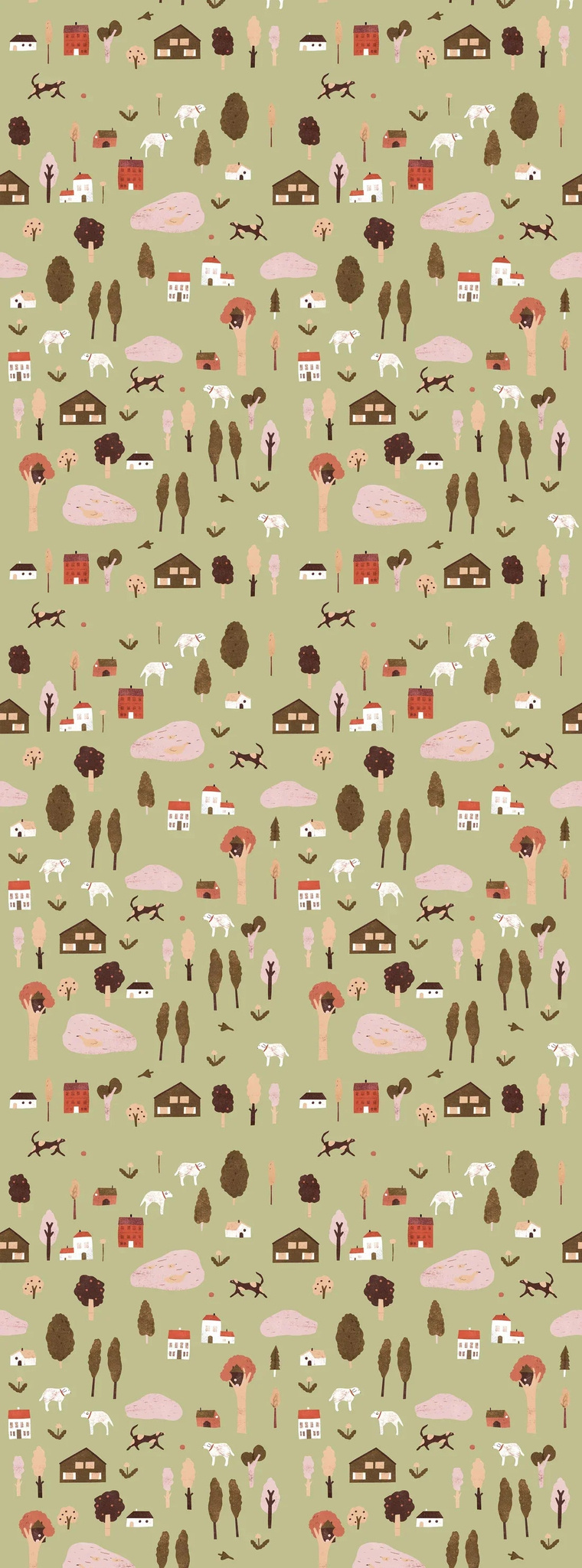 Geef de kinderkamer een vrolijke uitstraling met dit vrolijke zoekplaatjes behang van Meet Me at the Wall. Dit speelse ontwerp zit vol schattige huisjes, vrolijke boompjes en speelse dieren, allemaal gehuld in zachte pastelkleuren. Het is een gegarandeerde glimlach-brenger die elke kamer opfleurt!