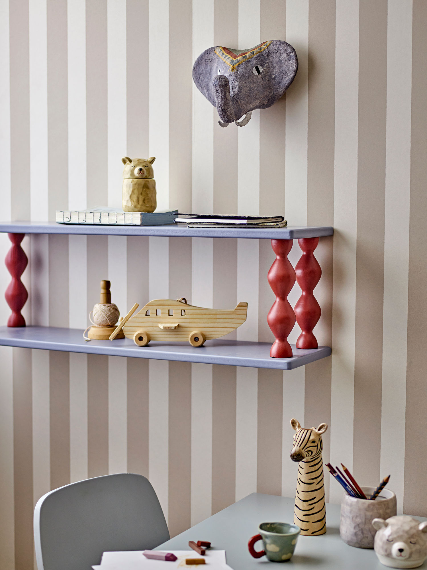 De Bibiola plank van Bloomingville MINI is een vrolijke toevoeging aan elke kinderkamer. De blauwe planken gecombineerd met bruin gedraaide poten geven dit meubel een speels, bijna sculpturaal karakter. Ideaal voor het uitstallen van knuffels, boeken of kleine verzamelingen.