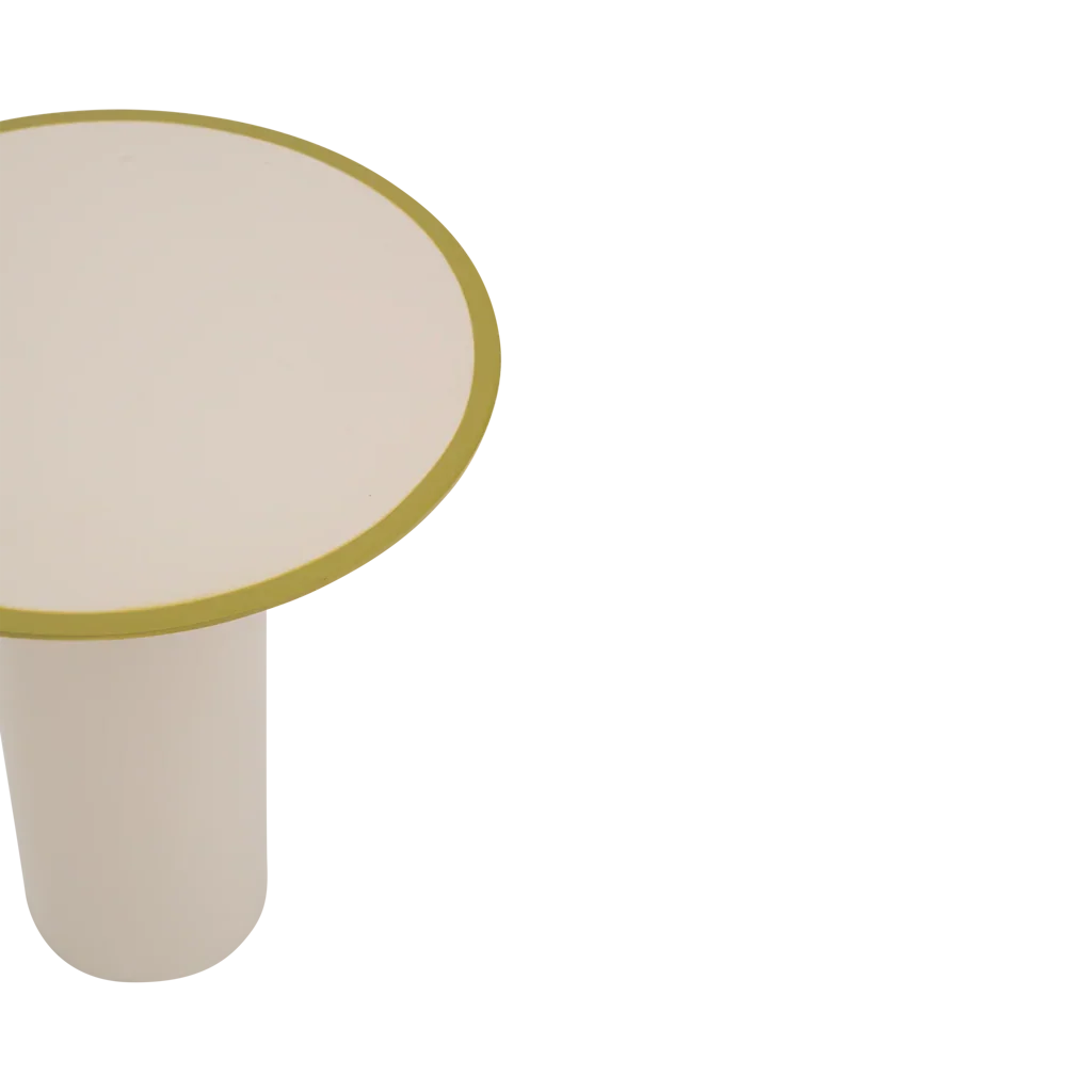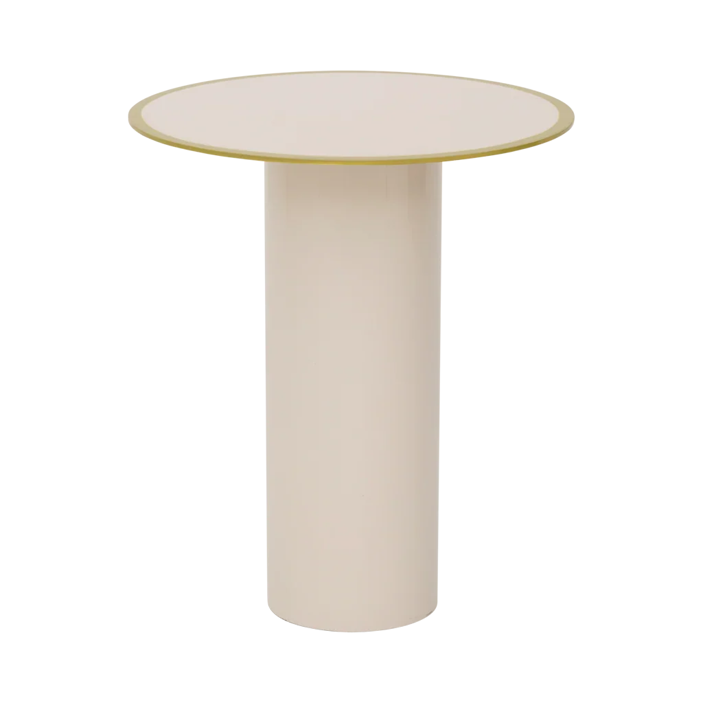 Deze ijzeren bijzettafel met rechte ronde voet en dun blad brengt een urban en moderne touch in je interieur. Het evergreen sprig-randje op het blad zorgt voor een fris accent, terwijl het glanzende ijzer in almond milk zorgt voor een strakke, neutrale uitstraling.