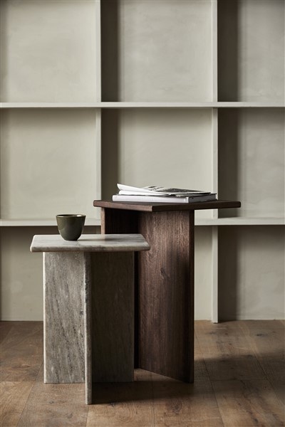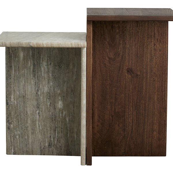 Deze set van 2 bijzettafels ziet er uniek uit door de verschillende materialen die zijn gebruikt. Het kleinere tafeltje is namelijk gemaakt van marmer en de grotere tafel is gemaakt van mango hout. Zet ze samen weg als een set of gebruik ze los van elkaar.