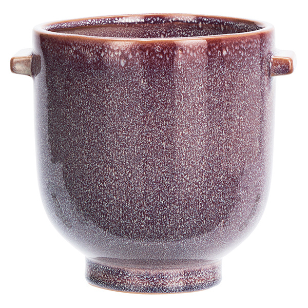 Bloempot van aardewerk in paars en gebroken wit met ronde vorm