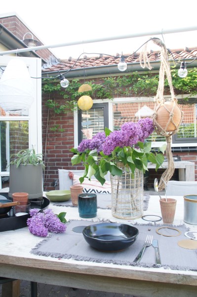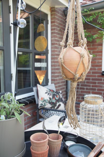 Wat betreft hangdecoraties valt er genoeg te kiezen. Het Deense merk Madam Stoltz heeft een mooie basic jute plantenhanger. Leuk in combinatie met een lichtsnoer. En met de papieren lantaarns 'Drop' van de House Doctor maak je het feest af. Ik kan niet wachten op de lange zomeravonden!
