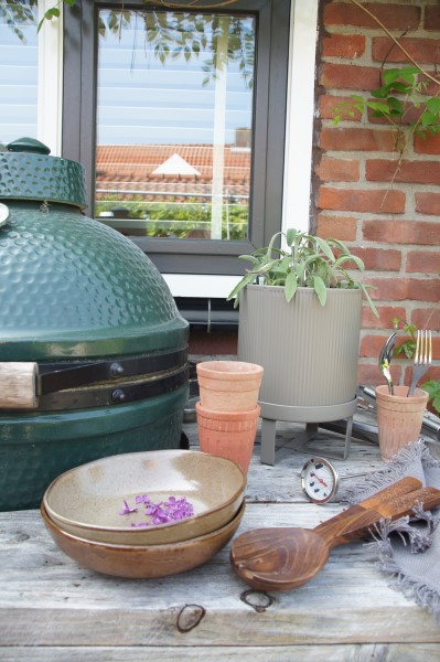 Met een goede mix van mooie producten maak je er een spannend geheel van. Wat denk je van de prachtige rustieke aardewerk kommen van Madam Stoltz gecombineerd met het houten slabestek van Madam Stoltz? De terracotta bloempotjes van de House Doctor zijn handgemaakt en passen goed op de tuintafel. Leuk om kleine plantjes in te doen of misschien met een servet en bestek bij ieder bord?