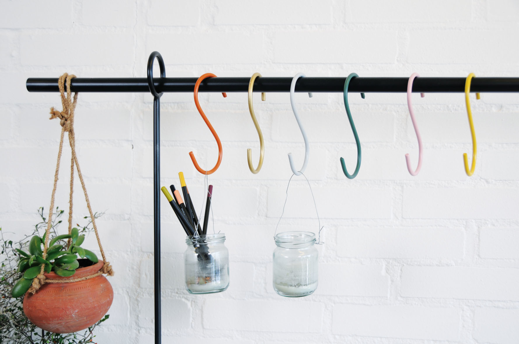 Tafelklem TOON leent zich perfect voor op je bureau. Hang er een leuke textielsnoer aan met een mooie grote gloeilamp voor extra verlichting, zo kun je goed zien wat je doet. Met S-haken HEIN of HEINTJE hang je handige spulletjes op zoals je schaar of potjes gevuld met potloden en pennen. Zo wordt thuis werken een feestje!