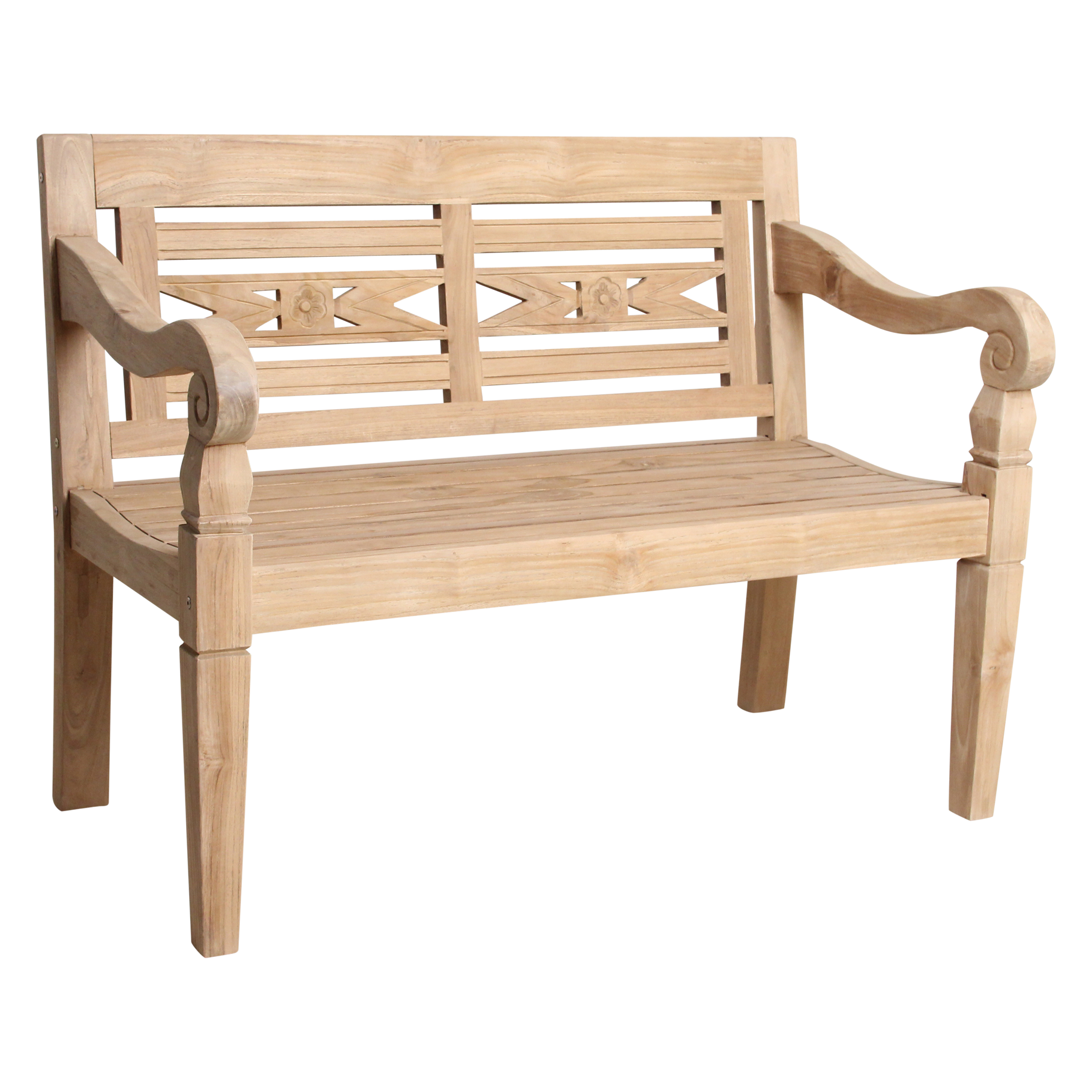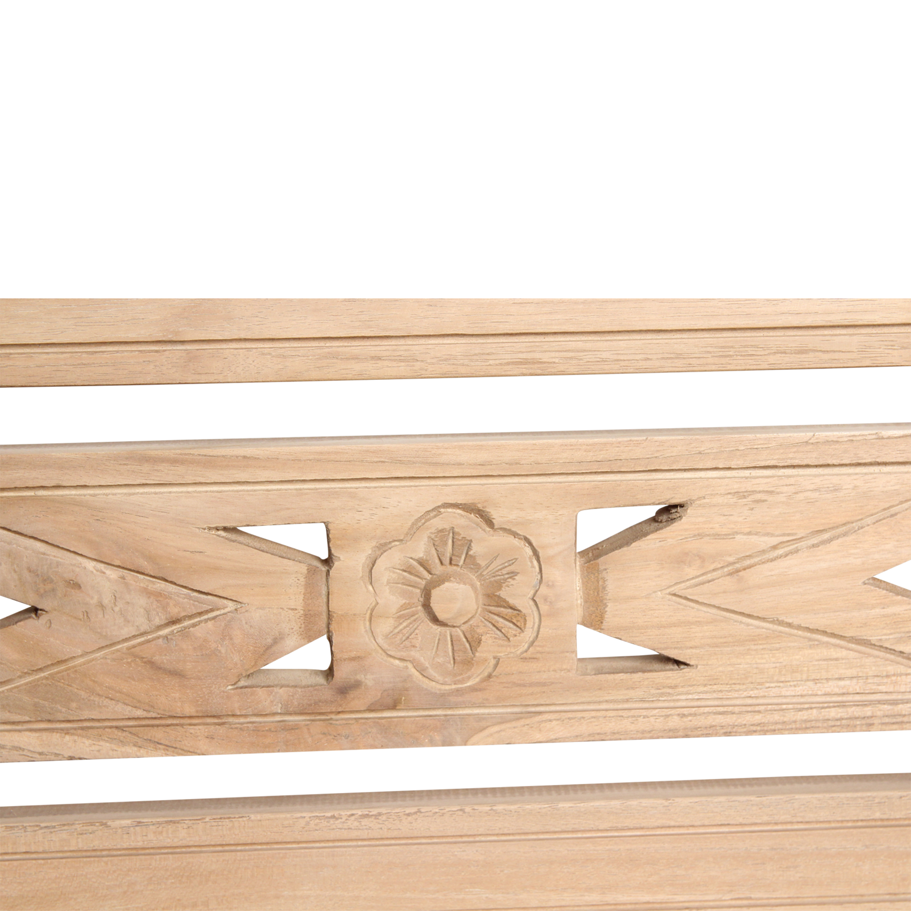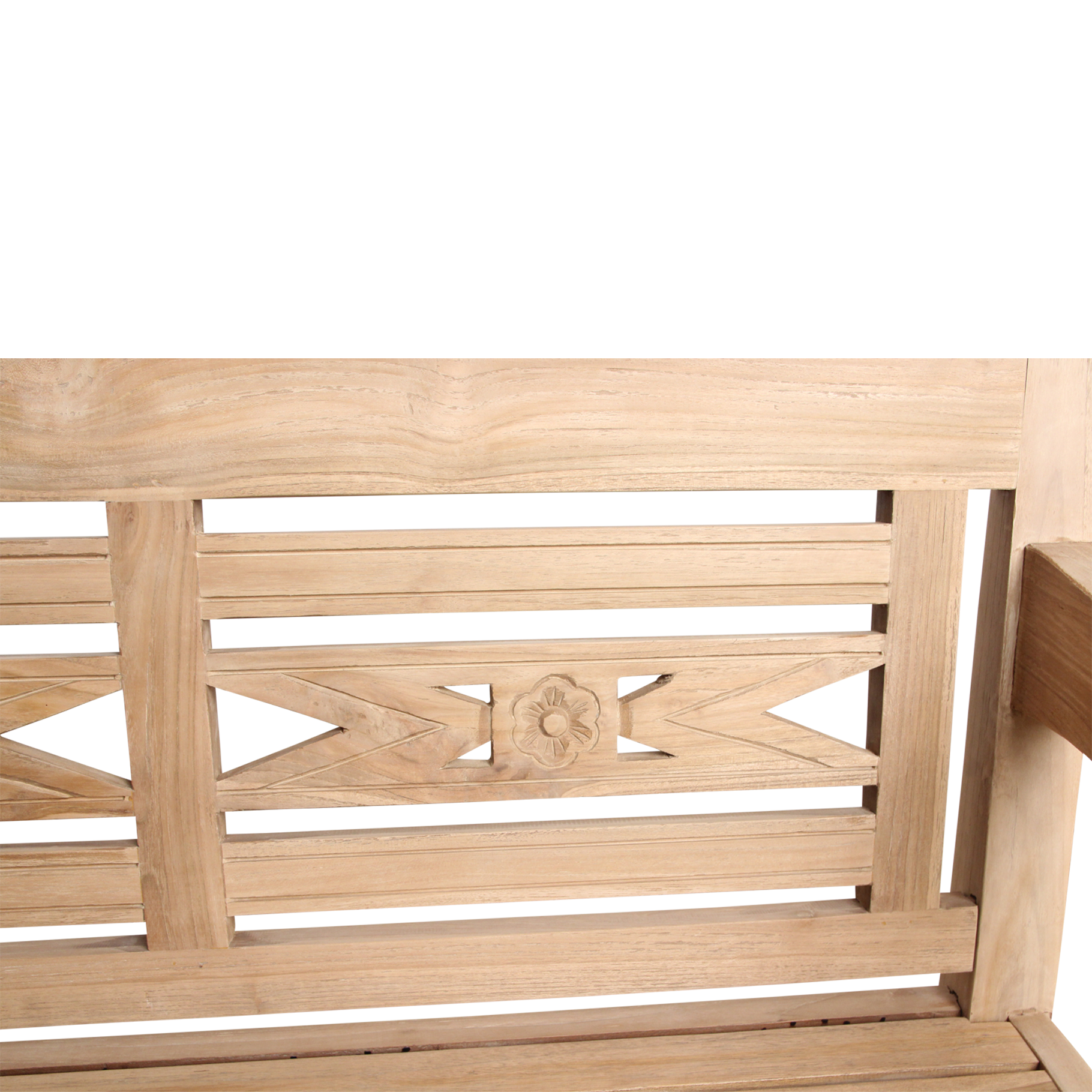 Breng een vleugje zon en ontspanning naar je tuin met deze teakhouten tuinbank, geschikt voor twee personen. Het hoogwaardige hout staat bekend om zijn duurzaamheid en wordt alleen maar mooier met de jaren. Laat de bank gewoon buiten staan: zonder behandeling ontwikkelt het hout een sfeervolle, vergrijsde uitstraling die perfect past bij een stijlvolle buitenruimte. Unieke Ibiza-details Kijk eens naar de prachtige handgesneden vormen in de rugleuning. De subtiele bloem en organische lijnen geven deze bank een speels, bijna bohemien tintje. Alsof je terras een klein stukje eilandvibe cadeau krijgt.
