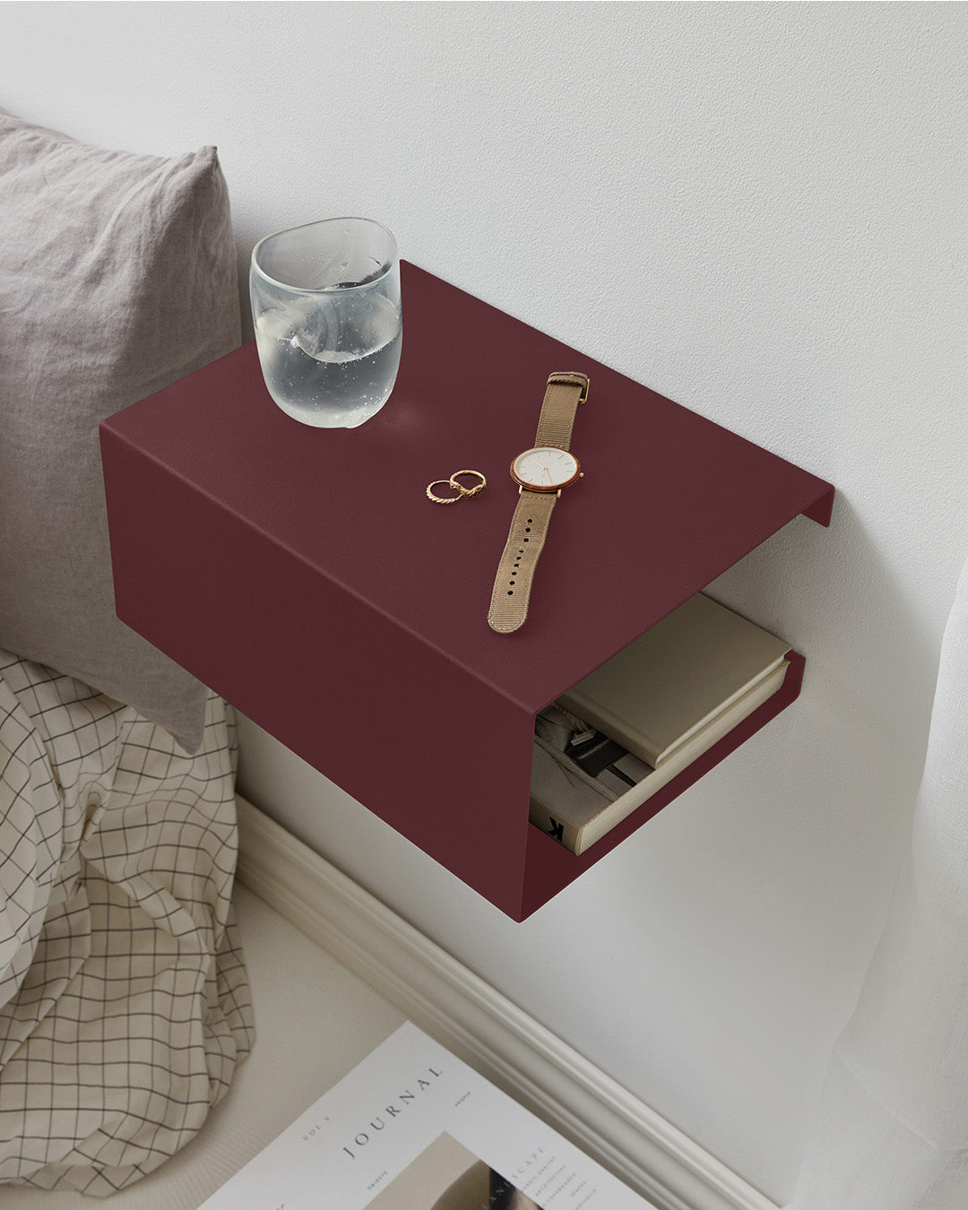 BoxShelf – A multifunctional and stylish storage solutionBoxShelf is made of metal with a beautiful, textured surface and comes in a wide range of lovely colors that fit perfectly into any interior. With BoxShelf, you can create your own personalized wall by combining shelves based on the number, colors, and style. It's the perfect solution for shoe storage – elegant, functional, and creative.But BoxShelf is more than just a shoe rack. Use it as a nightstand, with room for your book, alarm clock, and glasses. It also works perfectly in your entrance for storing keys, small items, or other essentials when you come home.BoxShelf is wall-mounted, making it both smart and space-saving. Its versatility and sleek design make it a must-have in any home where function and aesthetics go hand in hand.Material and DimensionsMaterial: SteelWidth: 35 cmDepth: 25 cmHeigh: 15cmThickness: 2 mmMaintenanceClean your BoxShelf with a soft, damp cloth or sponge. You may add a mild dishwashing detergent or soap if needed. Wipe it dry with a clean, dry cloth afterward.