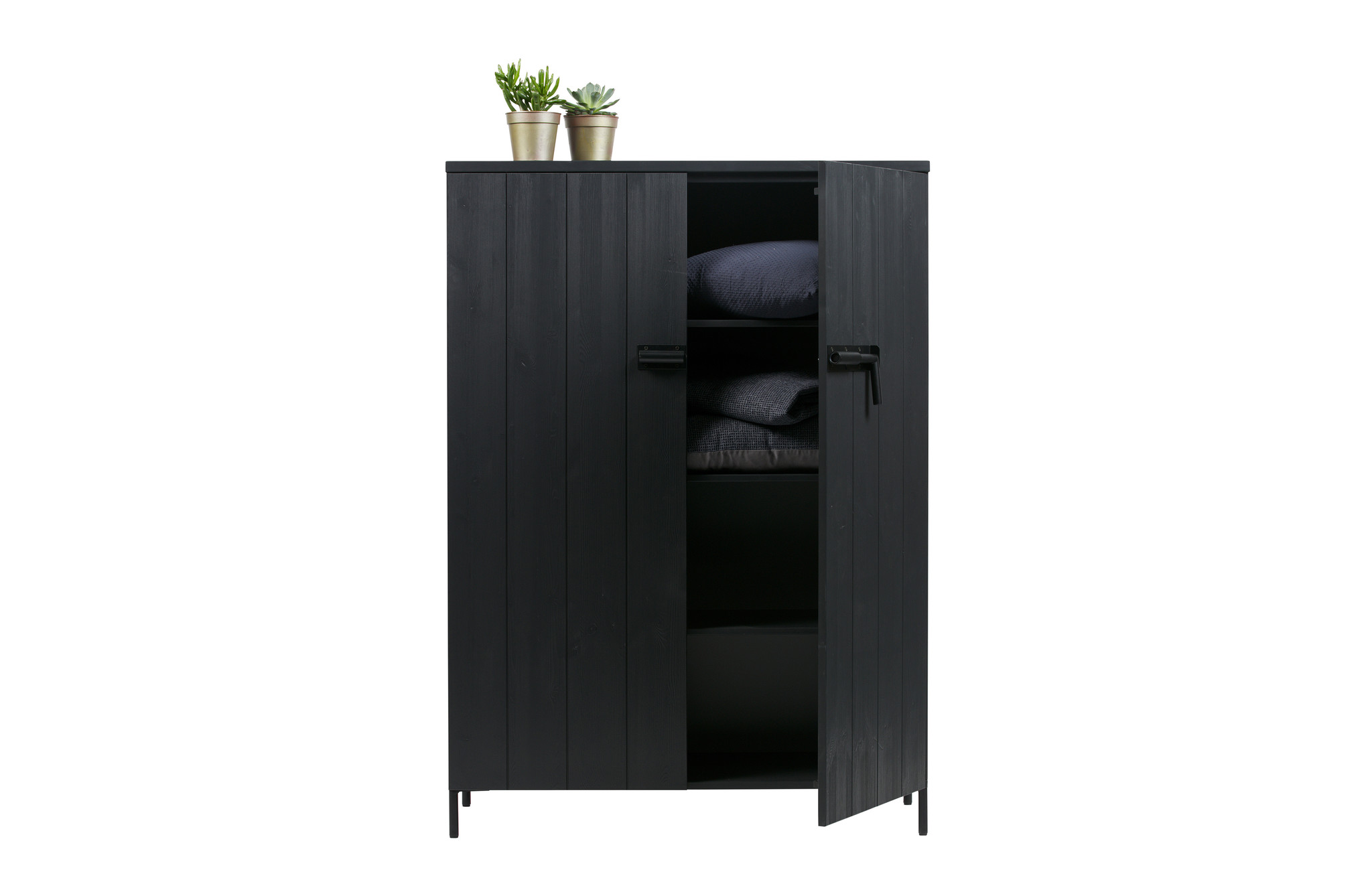 De Bruut 2-deurs kast uit de WOOOD collectie is een stoere opbergkast en een aanwinst voor elke ruimte. De kast is gemaakt van grenen hout dat een geborstelde afwerking heeft. De pootjes en de gave sluiting zijn gemaakt van metaal. Zowel het grenen hout als het metaal is afgewerkt in de kleur zwart.