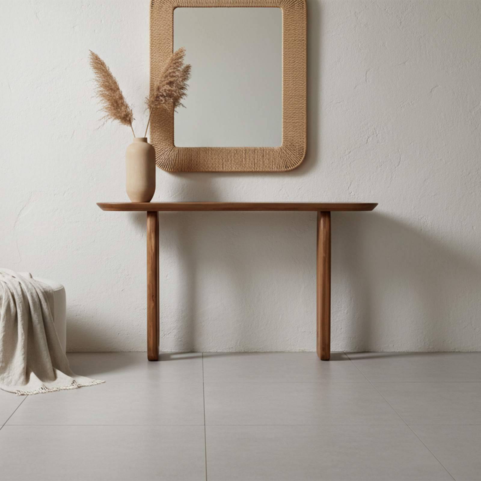 Breng stijl, warmte en een natuurlijk accent in huis met de Bullnose wandtafel, een veelzijdig en tijdloos meubelstuk dat jarenlang meegaat.