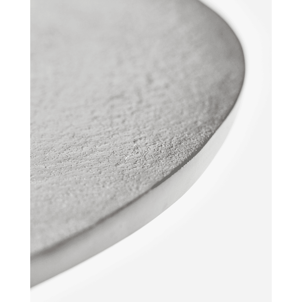 De Pan salontafel geeft je woonkamer een minimalistische, sculpturale uitstraling. De tafel is gemaakt van aluminium en combineert hij stevigheid met een elegante zilveren finish die in elke woonstijl past.