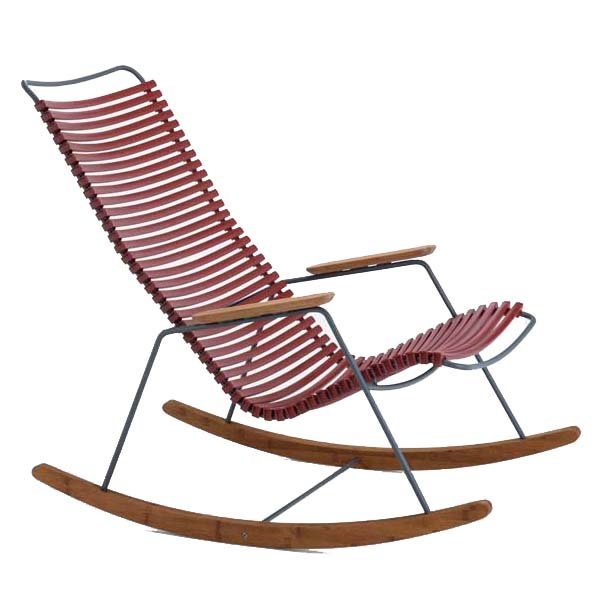 Schommelstoel CLICK is een heerlijk comfortabele tuinstoel waar je lekker in kunt loungen en schommelen op zonnige dagen. Materiaal: Metaal met poedercoating voor gebruik buitenshuis met PP kunststof lamellen en bamboe armleuningen. Gebruik voor het reinigen een natte doek of een zachte borstel. Gebruik voor het reinigen geen chemicaliën. Wij raden u aan het bamboe voor het in gebruik nemen en na ca. 4 weken, daarna indien nodig (3-4 keer per jaar)te behandelen met olie. We raden olie aan die geschikt is voor bamboe meubelen voor buiten, inclusief anti schimmel. Buiten het seizoen bewaren in een droge en geventileerde ruimte. Bedek het bamboe niet, bamboe is een natuurlijk materiaal dat lucht nodig heeft om te voorkomen dat schimmels zich in het materiaal verspreiden.