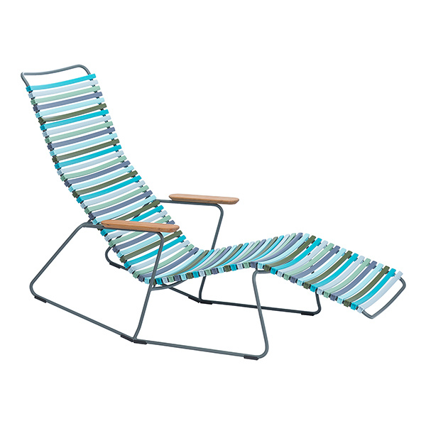 De CLICK sunrocker is ontstaan uit een (geslaagd) ontwerpexperiment. Je gebruikt je eigen lichaam om te bepalen of je zit of ligt door enkel naar voren of naar achteren te leunen. Simpel in gebruik en ze staan prachtig in de tuin! Bestel je de heerlijke loungestoel van HOUE in meerdere kleuren? De lamellen zijn verwisselbaar en zo kun je de tuin steeds weer een kleine opfrisbeurt geven! Het frame van de ligstoel is van metaal met een grijze poedercoat, de kunststof lamellen klik je er op en de armleuning van deze stoel is van bamboe.
