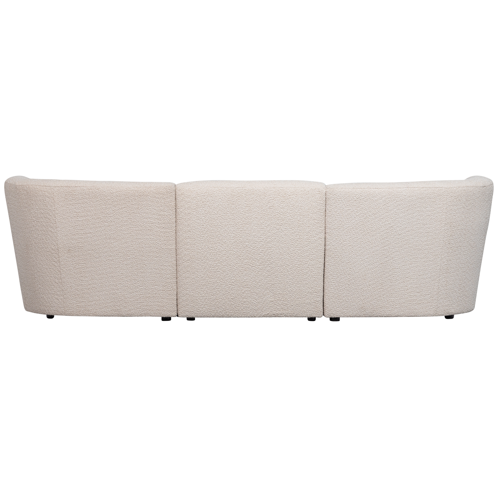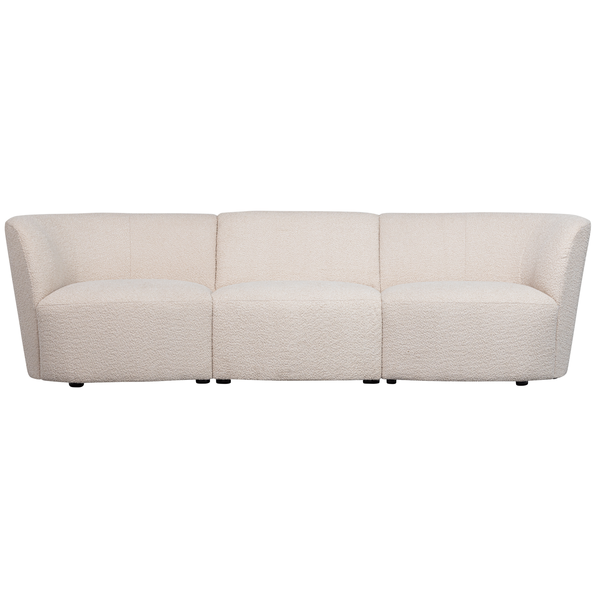 - 3-zits bank - Speels vormgegeven design - Bekleed in een wollige boucle (100% polyester) - H 70 cm x B 227 cm x D 72 cm De Coco-serie, uit de collectie van het Nederlandse interieurmerk WOOOD, is zeer geschikt voor de grote en kleine woonruimtes. De Coco elementen zijn zeer compact van formaat, hebben een zacht afgerond design en zijn ook los in de ruimte te plaatsen vanwege de stoffering aan elke zijde. Materiaal Onze zachte Almón boucle heeft een elegante textuur die meteen warmte in huis brengt. De boucle stof heeft een Martindale van 60.000, dat betekent dat de stof geschikt is voor redelijk intensief gebruik. De dichte weeftechniek zorgt voor de sterkte van de stof, dit maakt dat de Almón boucle niet snel zal slijten of scheuren. Ook heeft elke kleur een hoge kleurvastheid, maar het is aangeraden om direct zonlicht te vermijden om kleurnuances te voorkomen. Afmetingen - Hoogte: 70 cm - Breedte: 227 cm - Diepte: 72 cm - Zithoogte: 42 cm - Zitbreedte: 187 cm - Zitdiepte: 52 cm - Leuninghoogte: 70/28 cm - Leuningdikte: 20 cm - Poothoogte: 2 cm - Pootdikte: ø 3 cm - Draaggewicht: 100 kg per zitplaats Onderhoud Bij eventuele vlekken direct droogdeppen met een schone doek of tissue. Beslist niet wrijven! De meeste vloeistoffen zijn te verwijderen met lauw water. Maak gebruik van een zachte, ronddraaiende beweging van buiten naar binnen. Voor jarenlange vlekbescherming kan de stof worden geïmpregneerd. Impregneer het zitmeubel zo snel mogelijk na ontvangst om direct een goede bescherming te waarborgen. Levering De Coco-elementen worden per stuk geleverd. Plaats voor het beschermen van harde vloeren viltglijders aan de onderzijde van de kunststoffen vloerbeschermers.