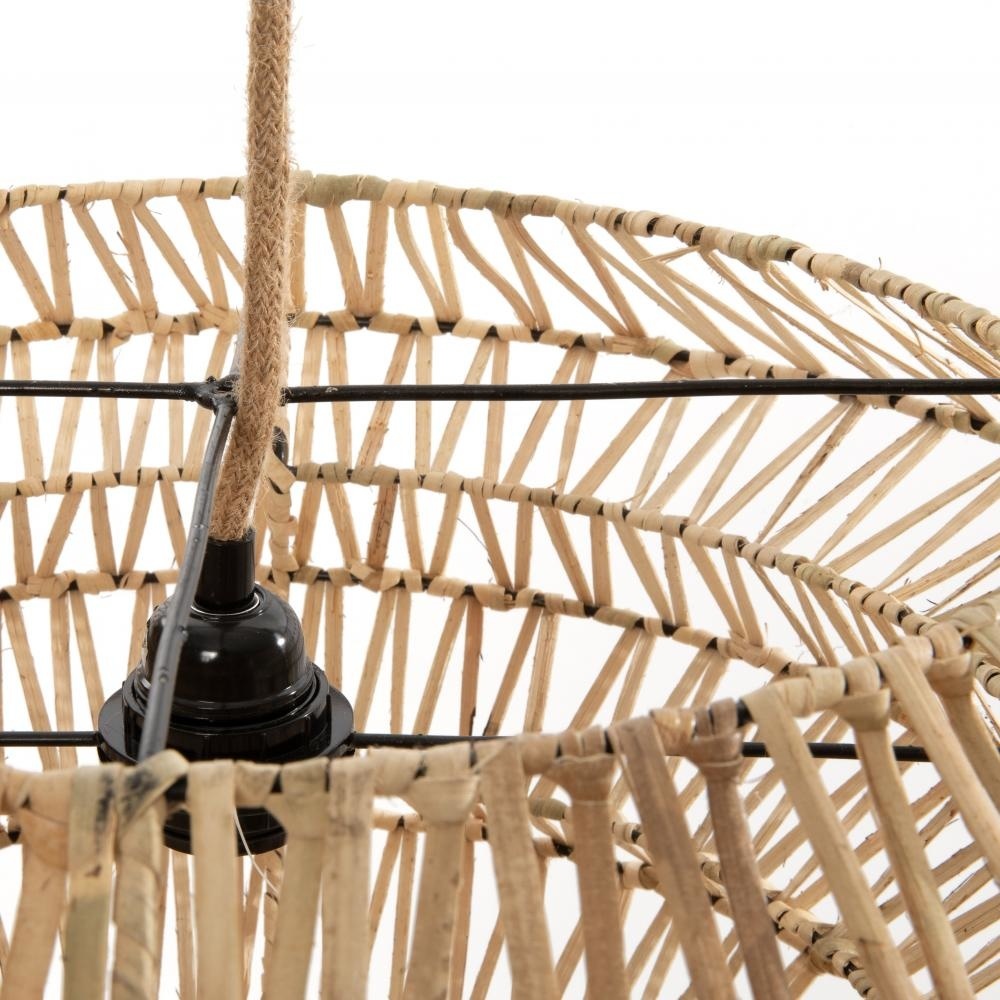 Verveeld met cirkels, rechthoeken en vierkanten? Waarom probeert u niet de ingenieuze vorm van deze rotan hanglamp! Deze oosters aandoende lampenkap, die van boven naar beneden iets taps toeloopt, zal stijl toevoegen aan (bijvoorbeeld) uw woonkamer. Ga voor bohemien, niet voor saai!