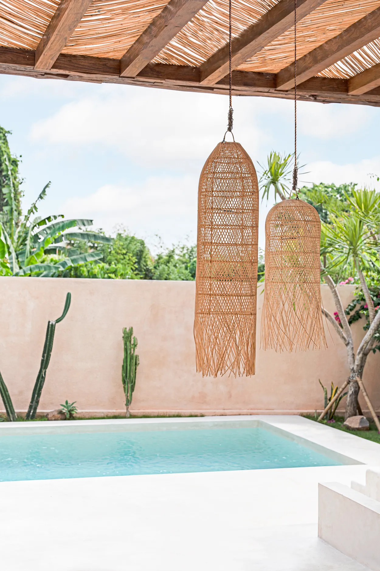 Een onweerstaanbaar mooie rotan hanglamp die uw woonkamer, slaapkamer of overdekte buitenruimte de perfecte boho 'look' geeft. Breng vakantiesfeer in huis met deze prachtige lamp!