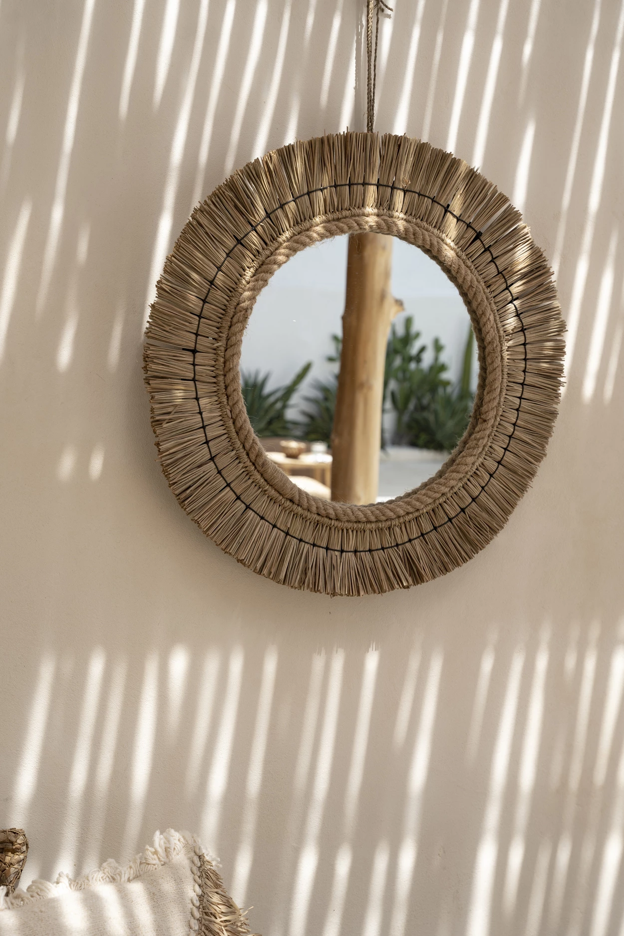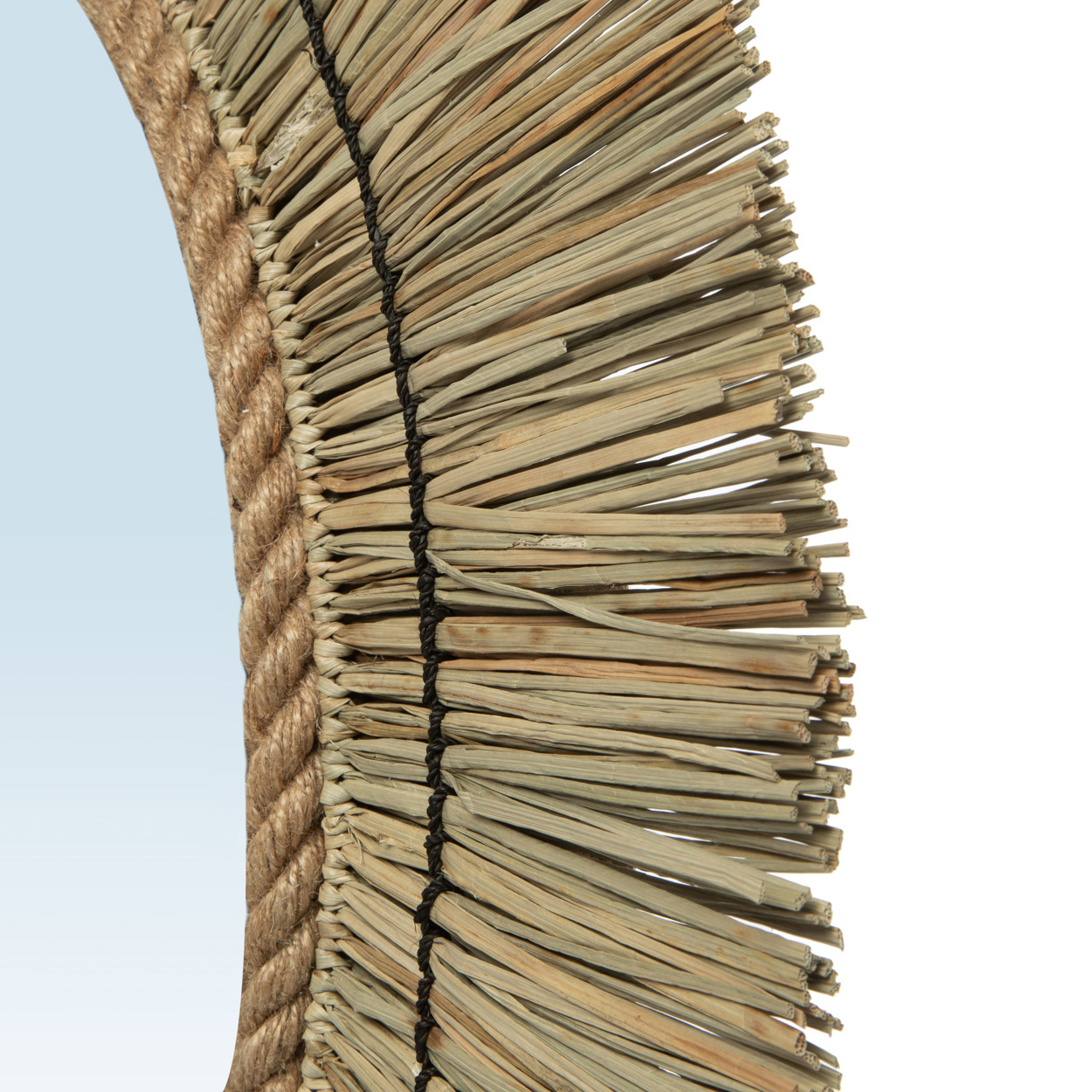 Deze prachtige spiegel brengt een vleugje kusttextuur in uw huis. Gemaakt van prachtig gras rondom een spiegelcentrum. Meer dan ooit trendy, brengt het een prachtige aardse boho touch aan uw interieur. Een geweldige look voor elke kamer.
