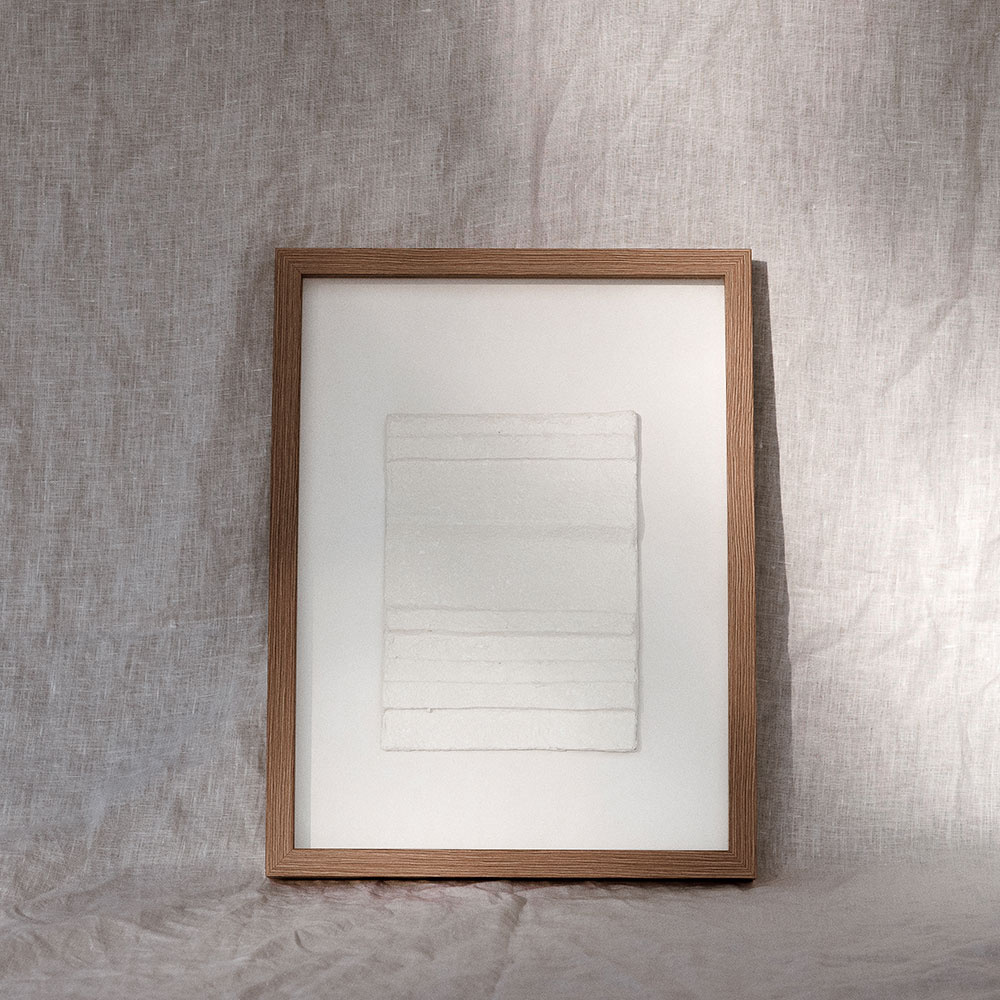 De verschillende werken van Studio AT zijn geïnspireerd op de Japanse vouwwijze, duurzaam, verschillende materiaalonderzoeken en naar eigen ontwerp gevangen in een drie dimensionaal werk. Ieder werk is hand made en uniek. De materialen van de werken zijn zoveel mogelijk gemaakt vanuit natuurlijke en gerecycled materialen: papier, papierpulp, karton en hout. Alle werken worden incl. lijst geleverd.