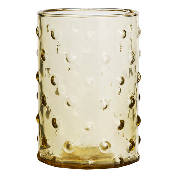 Dit lichtgele drinkglas brengt een zachte, zonnige toon naar je tafel. Het glas is handgemaakt en heeft een fijne structuur die het licht op een rustige manier breekt. Perfect voor dagelijks gebruik en makkelijk te combineren met andere glazen uit de collectie.