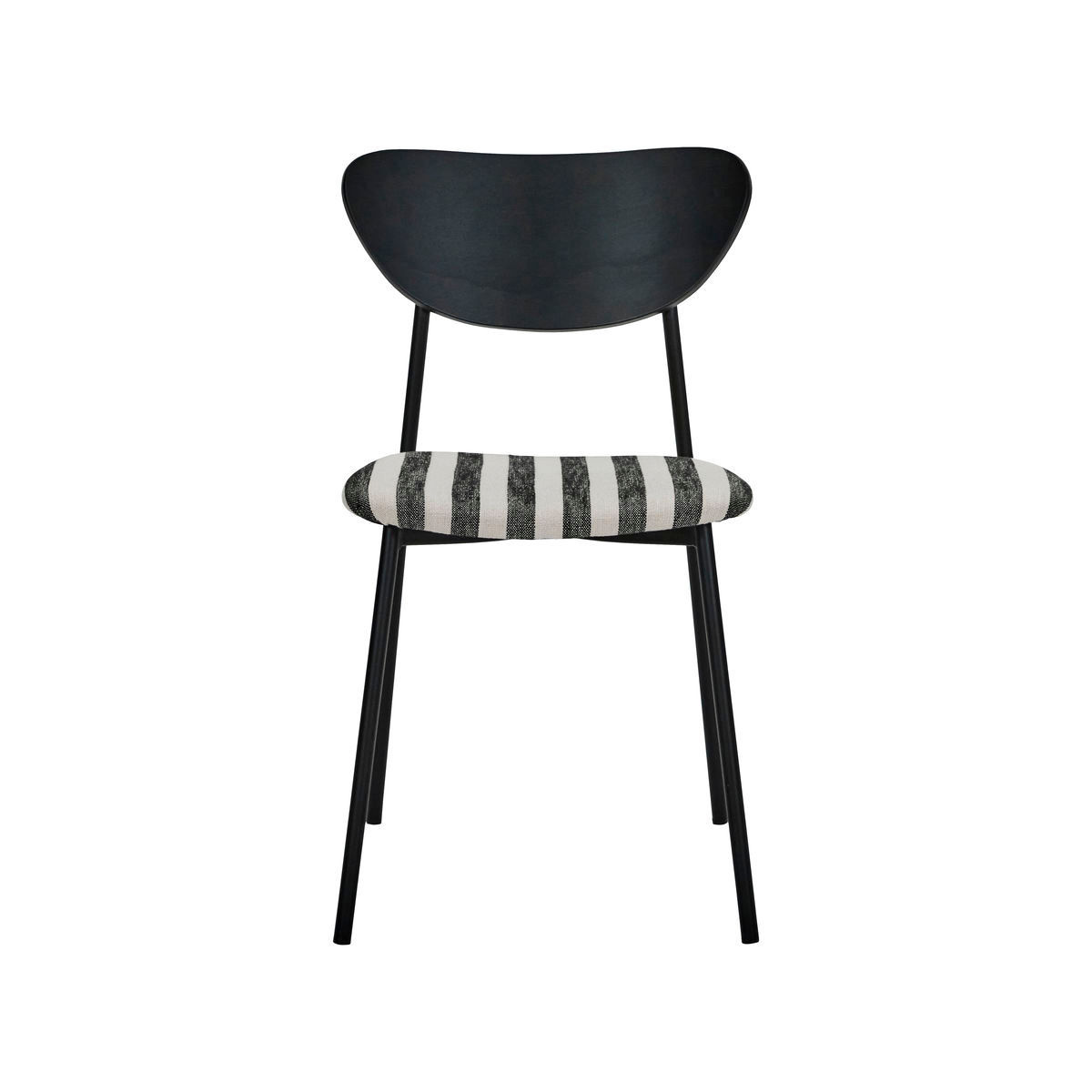Verhoog je eetkamer met deze stijlvolle stoelen, die een zwart-wit gestreepte polyesterstof en robuuste stalen poten hebben. Het ergonomische ontwerp zorgt voor een comfortabele zitervaring, of ze nu afzonderlijk, in groepen of gecombineerd met andere HDMust-stoelen worden gebruikt. De gestreepte stof geeft een strakke en gestructureerde uitstraling, waardoor deze stoelen een elegante aanvulling zijn op elke eetruimte.- Ergonomisch ontwerp voor comfort- Zwart gelakte stalen poten- Zwart-wit gestreepte stof- Veelzijdig voor verschillende omgevingenVoeg een vleugje moderne elegantie toe aan je eetkamer. Materiaal: Poplar, Beukenhout, Staal, Polyester Onderhoudsinstructies: Schoonmaken met een droge doek Extra informatie: Montage vereist