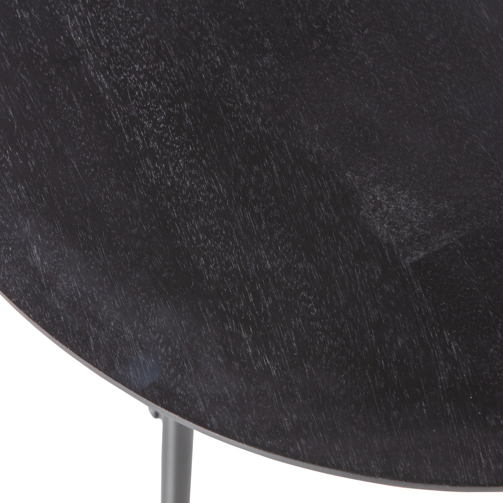 Het tafelblad van de Elegance eettafel is gemaakt van mangohout met een matzwarte finish. Mangohout staat bekend om de warme goudbruine kleur, duurzame groei en lange houdbaarheid. Mangohout wordt ook gekenmerkt door duidelijk zichtbare nerven en kleurnuances. De nerven of donkere lijnen en knoesten zorgen ervoor dat elk mangohouten item uniek is. Mangohout is zeer sterk en een van de hardere houtsoorten, hierdoor zal een mangohouten item niet snel beschadigen. Het onderstel van de eettafel is gemaakt van sterk metaal met een matzwarte poedercoating.