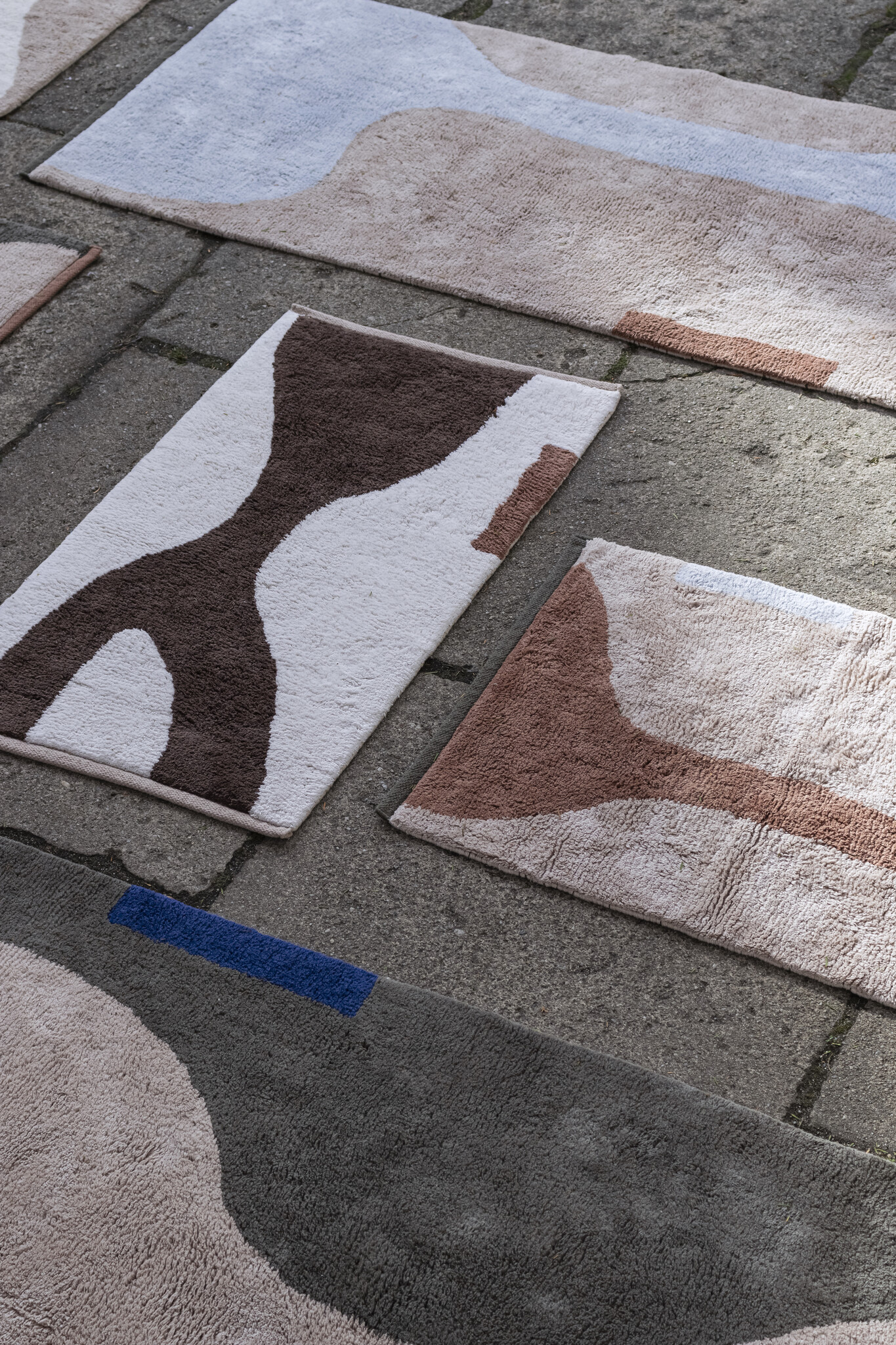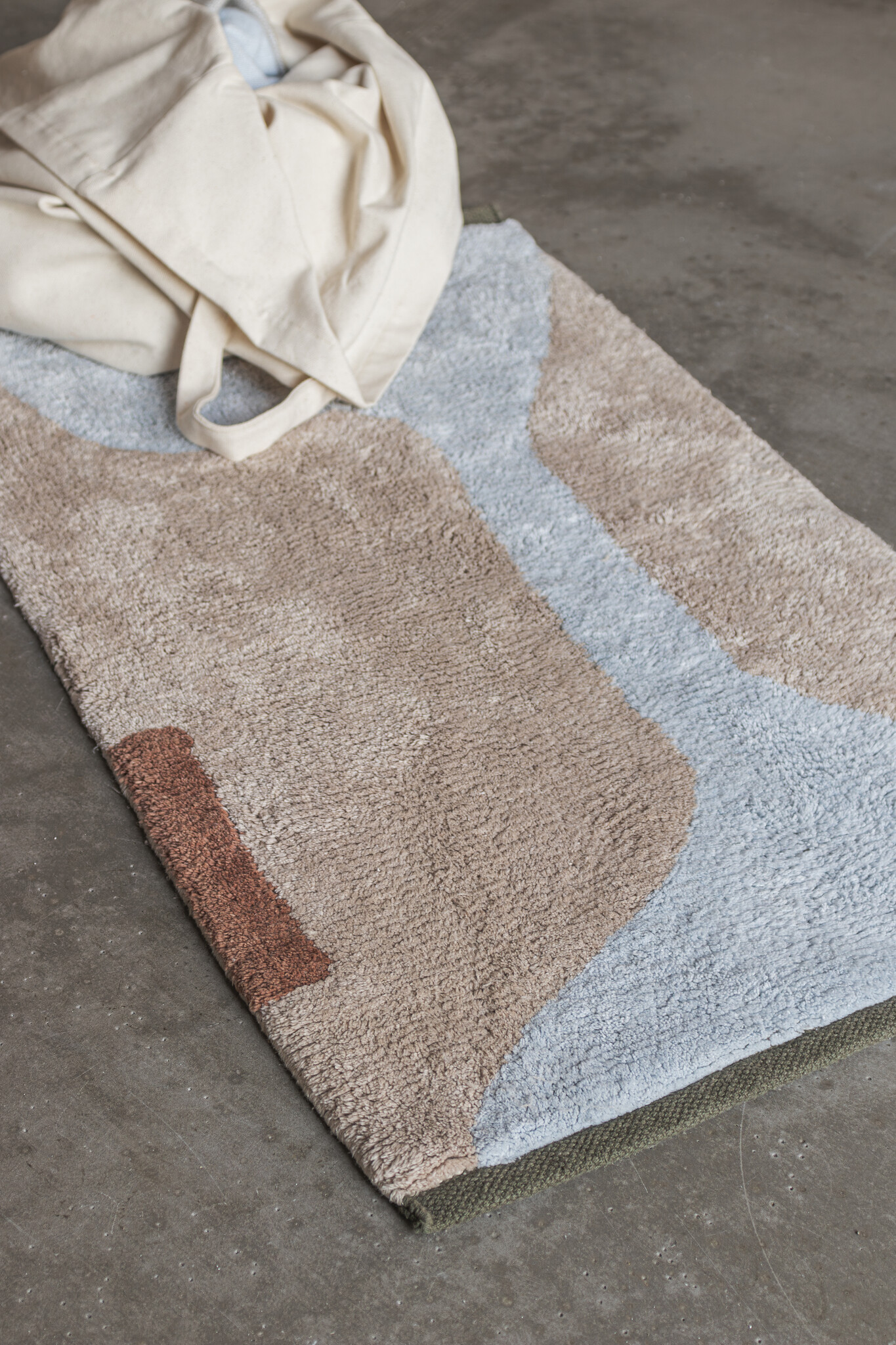 The small FIGURA rug in light blue is a decorative and practical piece with an artistic touch. Its colour palette and tufted texture draw inspiration from 1970s shag rugs, while the graphic design and earthy tones add warmth and softness to any room. The soft, tufted surface makes the rug incredibly comfortable to step on—perfect by the bed, in the living room, or as a playful accent in the children’s room. The rug features a non-slip latex backing, making it ideal for the bathroom too. A unique signature block with contrasting shape and colour breaks up the organic pattern, adding a playful element. TIP: Use the mat as a wall decoration to improve acoustics and give the room a personalised, artistic look. - Washing/Care Instructions: Wash at 30° C gentle. Do not use bleach. Tumble dry on low temperature. - Washing/Care Instructions: Wash at 30° C gentle. Do not use bleach. Tumble dry on low temperature. - Material Composition: 100% cotton, OEKO-TEX® 100-certified, rubber back